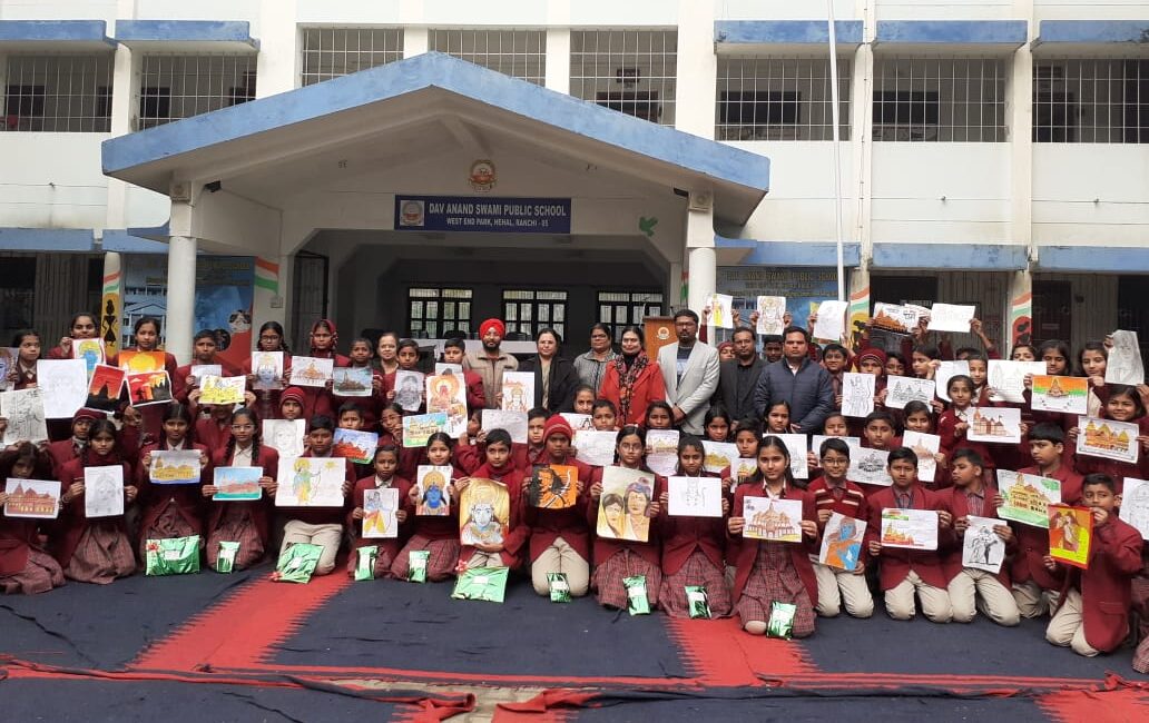 रांची। सामाजिक संस्था क्राउंड लायंस रांची ने हेहल स्थित डीएवी आनंद स्वामी पब्लिक स्कूल में ‘रामराज्य’ कार्यक्रम का आयोजन 6 जनवरी को किया। इसके तहत स्कूल के 301 बच्चों ने भगवान श्री राम की तस्वीर बनाई।