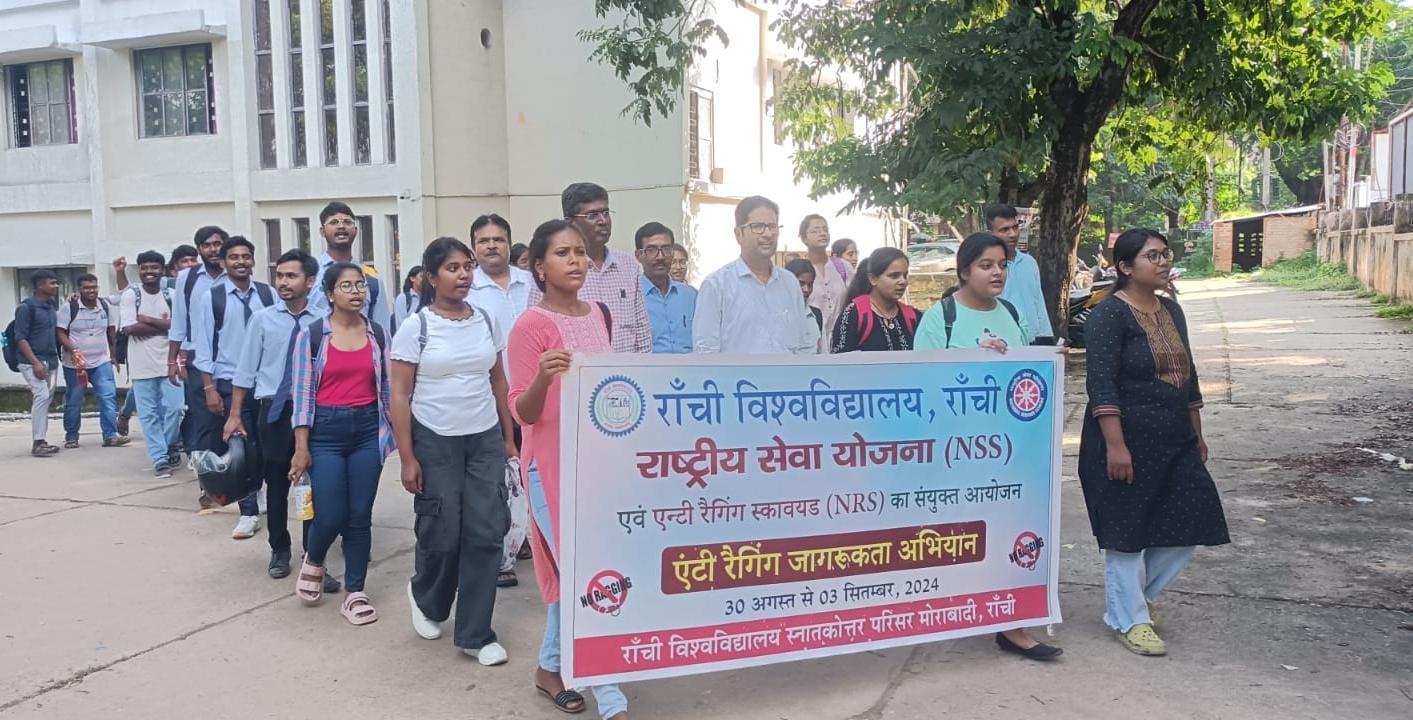 रांची। रांची विश्वविद्यालय के स्नातकोत्तर भूगर्भ शास्त्र, भौतिकी विभाग एवं गणित सह एमसीए विभाग की राष्ट्रीय सेवा योजना इकाई एवं एंटी रैगिंग स्क्वैड के संयुक्त तत्वावधान में एंटी रैगिंग को लेकर संगोष्ठी, शपथ ग्रहण सह जागरुकता रैली का आयोजन 3 सितंबर को किया। भूगर्भ शास्त्र के अध्यक्ष डॉ सी.पी. महतो ने इसकी अध्यक्षता की।