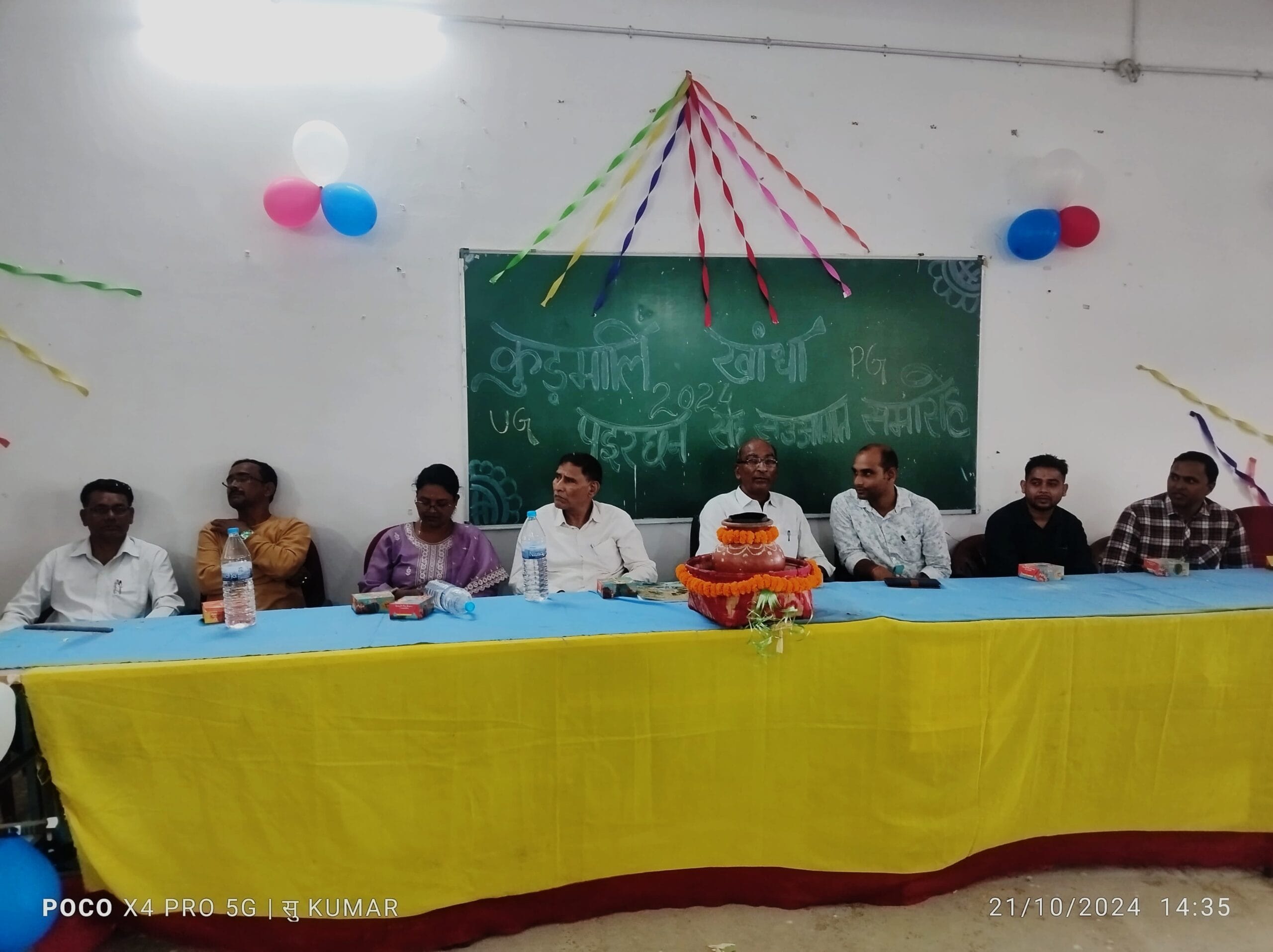 इस समारोह में स्नातक कुड़मालि के सत्र 2024-28 और स्नातकोत्तर कुड़मालि के सत्र 2024-26 के विद्यार्थियों को वर्तमान विद्यार्थियों की ओर से उपहार दिया गया। इसके साथ ही सभी कोई अपना परिचय और गीत भी सुनाया।