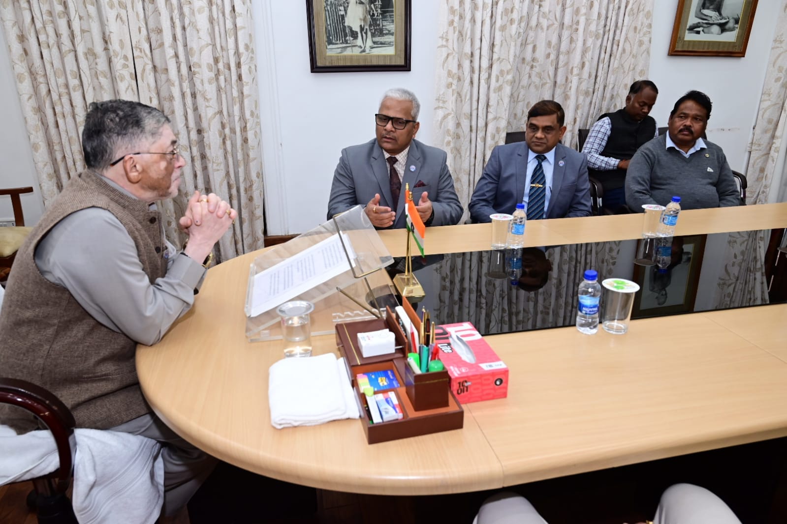 रांची। राज्यपाल संतोष कुमार गंगवार से सैनिक कल्याण निदेशालय का एक शिष्टमंडल ने 6 दिसंबर को राज भवन में भेंट कर ‘सशस्त्र सेना झंडा दिवस’ के उपलक्ष्य में बैज लगाया। इस अवसर पर राज्यपाल ने भारतीय सेना के सभी कार्यरत और अवकाश प्राप्त सैनिकों एवं उनके परिवारजनों को हार्दिक बधाई व शुभकामनाएं दी।