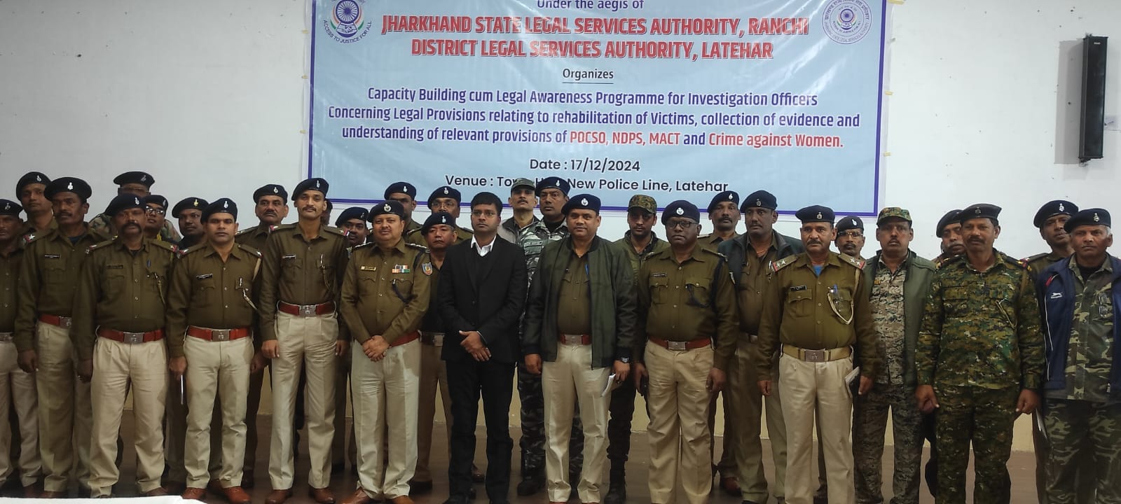 लातेहार। झालसा, रांची के निर्देश पर जिला विधिक सेवा प्राधिकार ने लातेहार टाउन हॉल में जिले के अनुसंधानकर्ता पुलिस पदाधिकारियों को प्राशिक्षण दिया गया। बतौर मुख्य अतिथि जिला विधिक सेवा प्राधिकार के सचिव शिवम चौरसिया ने अनुसंधानकर्ता पुलिस पदाधिकारियों को साक्ष्य संग्रह में सावधानी बरतने एवं संवेदनशीलता रखने के बारे में बताया।