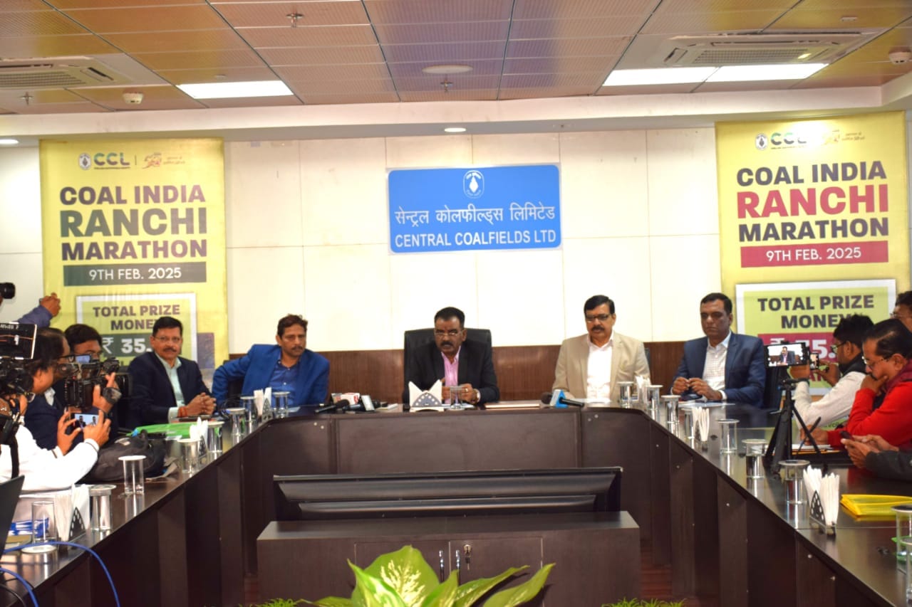 रांची। सेंट्रल कोलफील्ड्स लिमिटेड (सीसीएल) के तत्वावधान में कोल इंडिया रांची मैराथन 9 फरवरी को होगा। इसकी आधिकारिक वेबसाइट का शुभारंभ सीसीएल के सीएमडी नीलेंदु कुमार सिंह ने 1 जनवरी, 2025 को किया। इस अवसर पर निदेशक (वित्त) पवन कुमार मिश्रा, निदेशक (कार्मिक) हर्ष नाथ मिश्र, निदेशक (तकनीकी/संचालन) हरीश दुहान, मुख्य सतर्कता अधिकारी (सीवीओ) पंकज कुमार एवं वरिष्ठ अधिकारी भी उपस्थित थे।