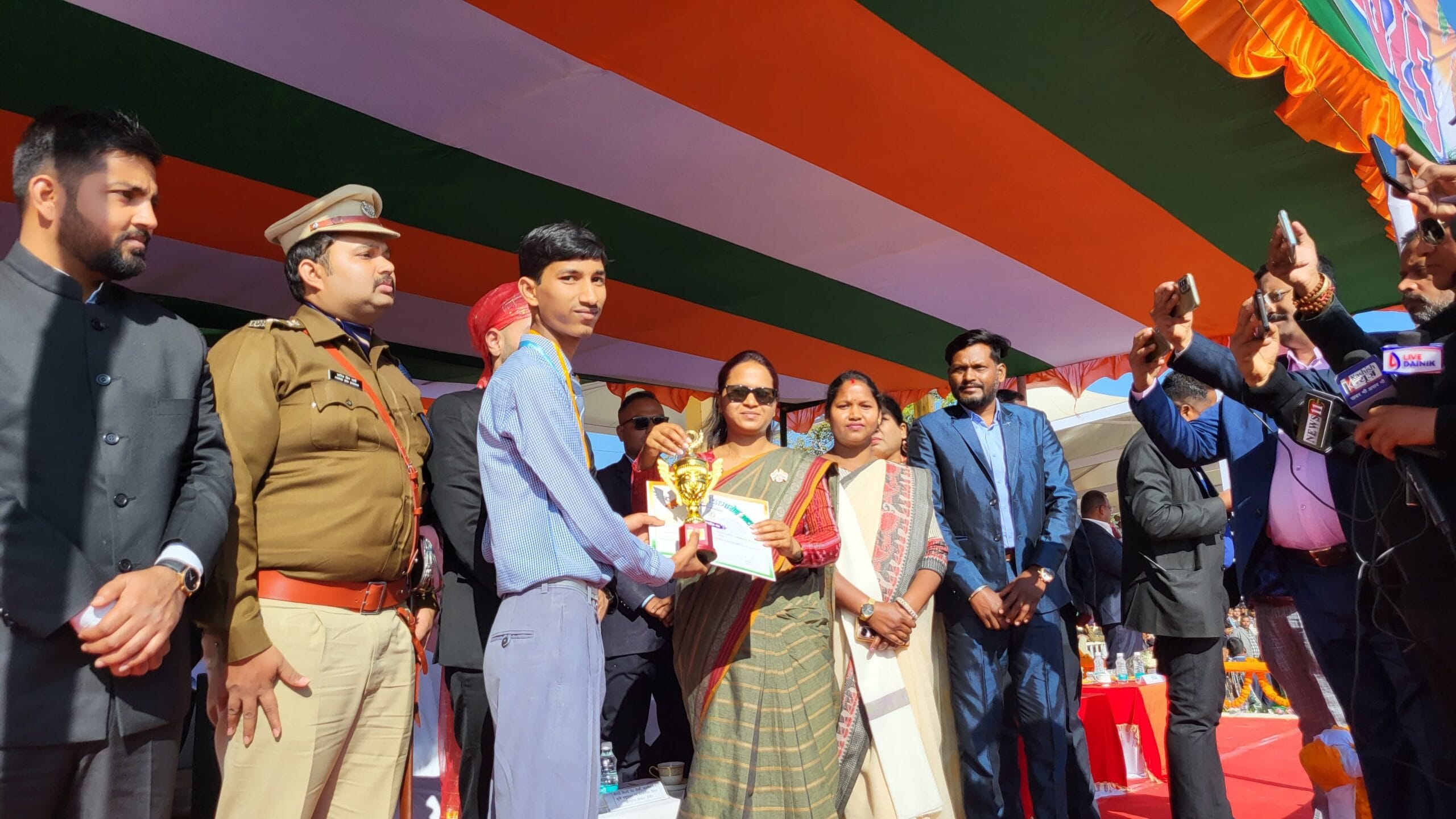 कार्यक्रम में मंत्री द्वारा जिला स्तर शिक्षा और खेल के क्षेत्र में बेहतर प्रदर्शन करने वाले छात्र-छात्राओं व खिलाड़ियों को शील्ड, मेडल व प्रशस्ति पत्र देकर सम्मानित किया गया। शिक्षा के क्षेत्र में एकल्व्य आवासीय विद्यालय (कुजरा) की सुषमा कच्छप, मुख्यमंत्री उत्कृष्ट विद्यालय (कुजरा) की छात्रा खुशबू लकड़ा, मंजूरमति उच्च विद्यालय के अमित राम ओलंपियाड विजेता को सम्मानित किया गया।