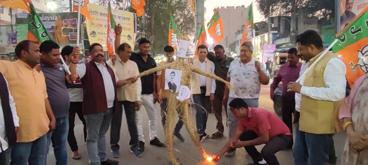 प्रश्न पत्र लीक होने के विरोध में भाजयुमो का प्रदर्शन, मुख्यमंत्री का फूंका पुतला