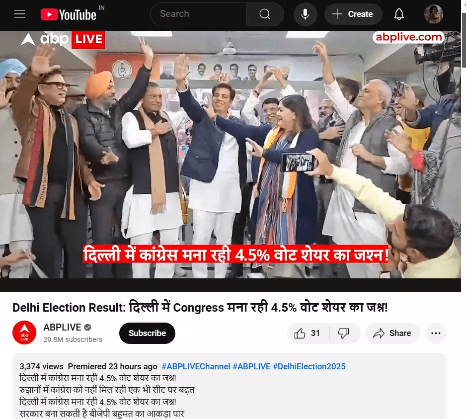बूम ने जब पड़ताल की तो पाया कि वायरल दावा गलत है। कांग्रेस नेताओं के डांस का यह वीडियो 23 जनवरी यानी चुनाव परिणाम से पहले का है। उस दिन पार्टी ने विधानसभा चुनाव के मद्देनजर अपना थीम सॉन्ग लॉन्च किया था।