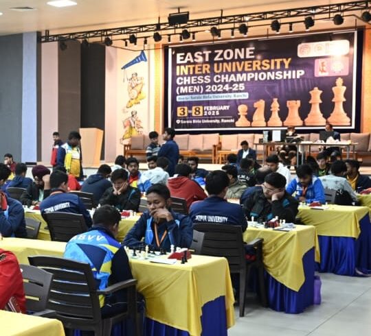 रांची। सरला बिरला विश्वविद्यालय की मेजबानी में एसोसिएशन ऑफ इंडियन यूनिवर्सिटीज (एआईयू) द्वारा आयोजित ईस्ट जोन चेस चैंपियनशिप (पुरुष) के तीसरे दिन के मुकाबलों के पांच चक्रों के बाद कलकत्ता, जादवपुर और पटना विश्वविद्यालय के प्रतिभागी आगे चल रहे हैं।