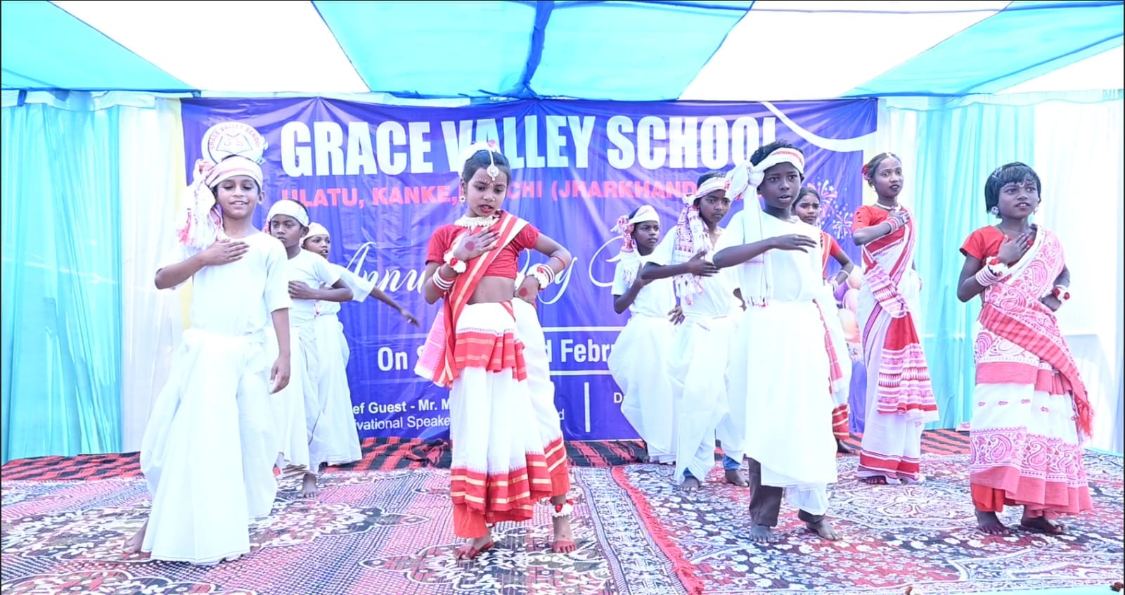 रांची। ग्रेस वैली स्कूल का वार्षिक उत्सव बड़े ही हर्षोल्लास और उत्साह के साथ 24 फरवरी को मनाया गया। कार्यक्रम में स्कूल के प्राचार्य साबिर हुसैन के साथ मुख्य अतिथि मो मोईन विशेष रूप से उपस्थित रहे। विशिष्ट अतिथि असफाक़ खान, जुल्फिकार खान, सुहैल खान, लाल मोहम्मद खान, अयाज खान, फारुक खान, हेरचू उरांव, नंदन उरांव, तौहीद खान, हाफिज़ुल अंसारी एवं उलातू की मुखिया सुनीता देवी थे।