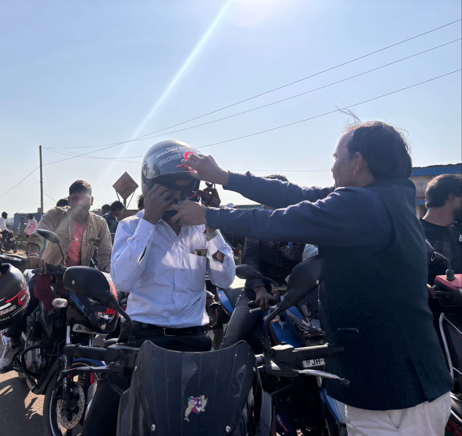 कार्यक्रम को संबोधित करते हुए परियोजना प्रमुख शिव प्रसाद ने सड़क सुरक्षा के महत्व पर जोर दिया। दोपहिया वाहन चालकों से हमेशा हेलमेट पहनने की अपील की। उन्होंने कहा कि सड़क दुर्घटनाओं को रोकने के लिए हेलमेट का उपयोग जरूरी है। यह पहल स्थानीय समुदाय को सुरक्षित यातायात के प्रति जागरूक करने में सहायक होगी।