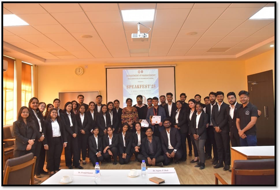 रांची। बीआईटी, मेसरा के मैनेजमेंट विभाग ने स्पीक फेस्ट-2025 का आयोजन 8 फरवरी को आरएंडडी बिल्डिंग के सेमिनार हॉल 2 में किया।  इस वर्ष का विषय ‘अम्प्लीफाई योर वाइस्, इग्नाईट योर पैशन’ था। इसमें प्रतिभागियों ने अपने नेतृत्व, आत्म अभिवाक्त और सार्वजनिक भाषण के गुणों को दर्शाया।