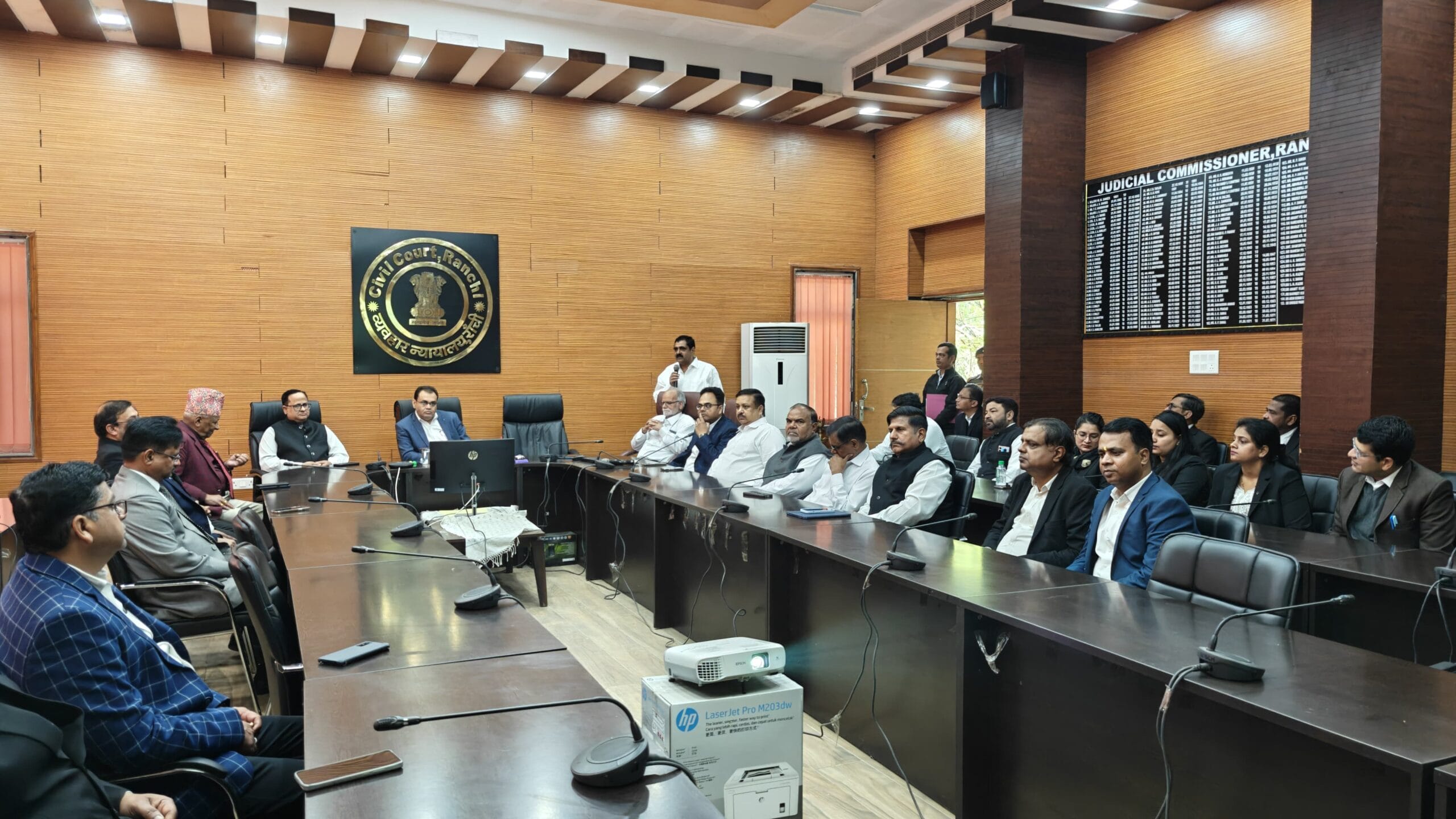 रांची। झालसा के निर्देश और न्यायायुक्त-सह-अध्यक्ष, डालसा, रांची के मार्गदर्शन में 22 फरवरी, 2025 को विवाह एवं चेक अनादरण से संबंधित विशेष लोक अदालत लगा। इस अवसर पर मुख्य अतिथि के न्यायायुक्त-सह-अध्यक्ष दिवाकर पांडेय, प्रधान न्यायाधीश कुटुम्ब न्यायालय. एस.एस फातमी, रांची जिला बार एसोसिएशन के अध्यक्ष शम्भु प्रसाद अग्रवाल, महासचिव संजय विद्रोही समेत व्यावहर न्यायालय के अपर न्यायायुक्त, न्यायिक पदाधिकारी, न्यायिक दंडाधिकारी एवं अन्य उपस्थित थे।