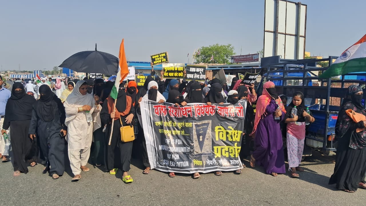 रांची। वक्फ कानून को लेकर कांके में 4 किलोमीटर लंबी मानव श्रृंखला बनाकर 25 अप्रैल को विरोध जताया गया। इसमें कांके प्रखंड के चुट्टू, नेवरी, केदल, मेसरा, ओयना, चंदवे, सोसो, बनहारा, उलातू, पखनाटोली, फुरहुरा टोली सहित सहित कई गांव के महिला और पुरुष शामिल हुए। उन्‍होंने नेवरी गोलचक्कर से रिंग रोड पतरातू तक मानव श्रृंखला बनाया। मानव श्रृंखला में शामिल प्रदर्शनकारियों ने हाथों में “वक्फ (संशोधन) अधिनियम 2025 हमें मंजूर नहीं“, “काला कानून वापस लो“, हमारा संवैधानिक अधिकार मत छीनो“ तख्ती-बैनर थामा हुआ था।