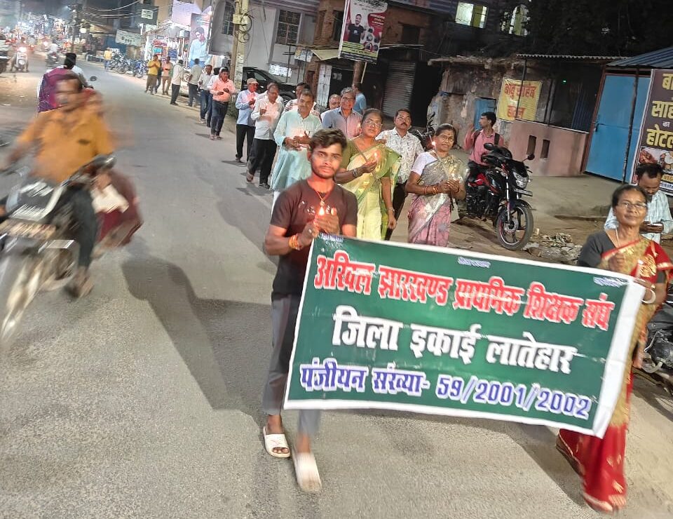 लातेहार पहलगाम हमले के विरोध में जिले के शिक्षकों ने एकजुटता दिखाई। कायर पाकिस्तान को आईना दिखाने के कार्य किया। अखिल झारखंड प्राथमिक शिक्षक संघ के आह्वान पर जिले के सभी शिक्षकों ने काला बिल्ला लगाकर अपने कर्तव्य स्थल पर कार्य किया। शाम में कारगिल पार्क थाना चौक से समाहरणालय मुख्य गेट तक मोमबत्ती जुलूस निकाला। पहलगाम आतंकी हमले की घोर निंदा की। दिवंगतों को श्रद्धांजलि अर्पित करते हुए समाहरणालय परिसर के नजदीक 2 मिनट का मौन धारण कर मृतक की आत्मा की शांति के लिए प्रार्थना किया।