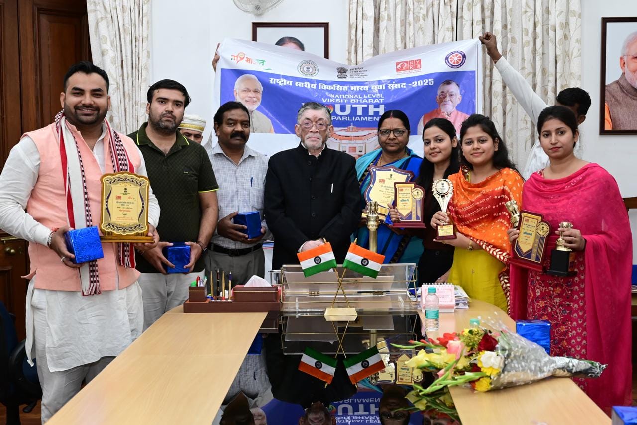 रांची। राज्यपाल संतोष कुमार गंगवार ने नई दिल्ली में आयोजित राष्ट्रीय स्तरीय ‘विकसित भारत युवा संसद’ में झारखंड के प्रतिभागियों की उत्कृष्ट भागीदारी के लिए उन्हें राज भवन में सम्मानित किया। इस अवसर पर उन्होंने रिया गुप्ता, श्वेता कुमारी और आयशा फातिमा सहित झारखंड के यूथ आइकन गौरव अग्रवाल को सम्मानित किया।