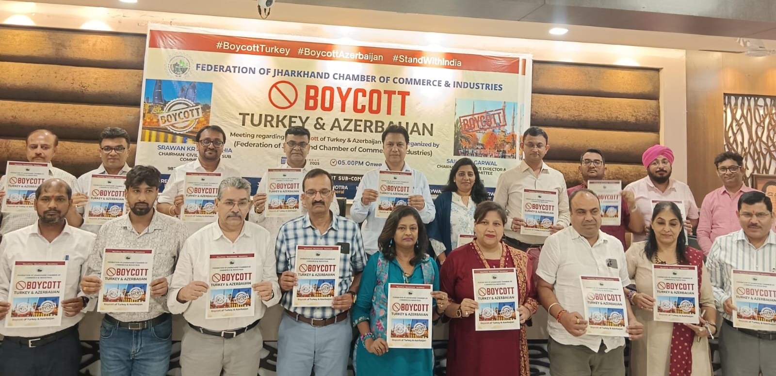 रांची। भारत-पाकिस्तान तनाव के समय तुर्किये और अजरबैजान ने खुलकर पाकिस्तान का समर्थन किया। इसका विरोध जताते हुए 19 मई को चैंबर भवन में उपस्थित ट्रैवल एंड टूर इंडस्ट्री से संबंधित ट्रैवल एजेंट और टूर ऑपरेटर्स ने एक स्वर में कहा कि हम उन देशों से व्यापार एवं ट्रैवल का पूरी तरह बॉयकॉट करेंगे।