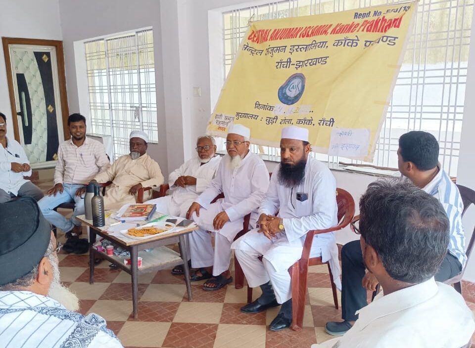 कांके (रांची)। सेंट्रल अंजुमन इस्लामिया, कांके प्रखंड की कार्यकारिणी समिति की बैठक मिल्लत कॉलोनी में सदर हाजी अब्दुल रहमान की अध्यक्षता में हुई। इसमें कई प्रस्ताव पर चर्चा की गई।