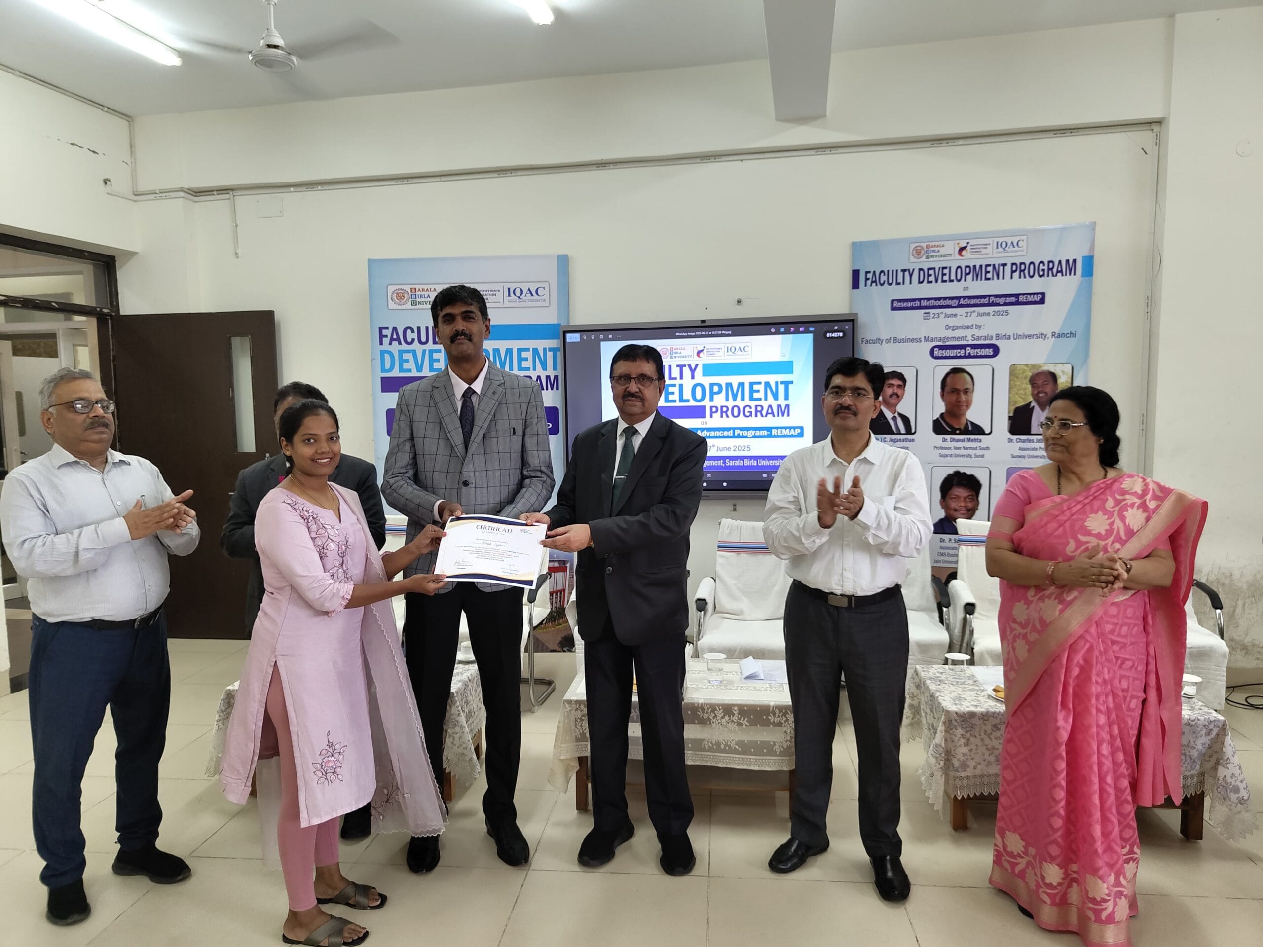 रांची। शिक्षकों में अनुसंधान क्षमताओं और शैक्षणिक उत्कृष्टता को बढ़ावा देने के निमित्त सरला बिरला विश्वविद्यालय के फैकल्टी ऑफ बिज़नेस मैनेजमेंट द्वारा आयोजित पांच दिवसीय फैकल्टी डेवलपमेंट प्रोग्राम ‘रिसर्च मेथडोलॉजी एडवांस्ड प्रोग्राम’ (REMAP 2025) का 27 जून को समापन हुआ।