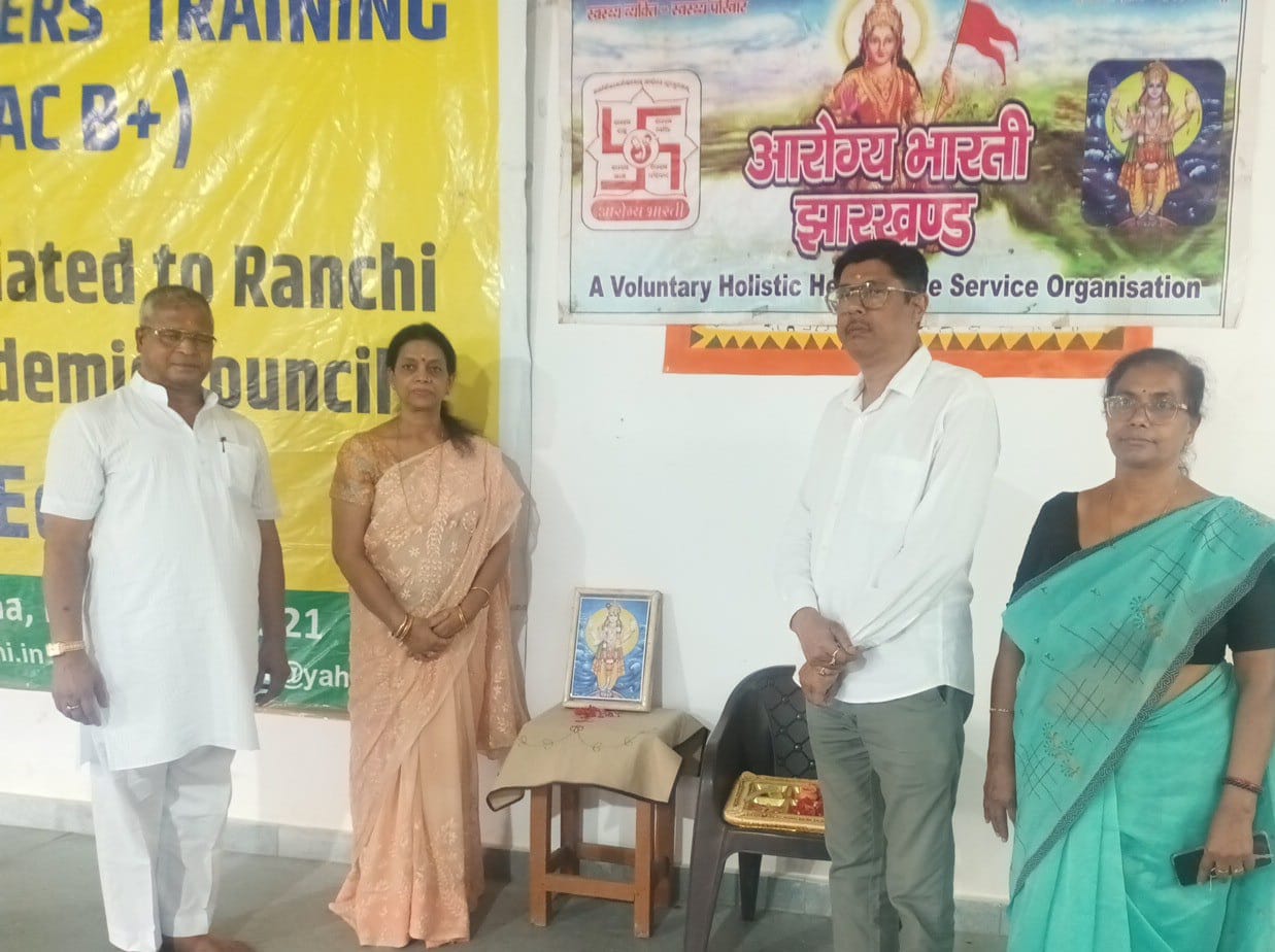 रांची। संतोष कॉलेज ऑफ टीचर्स ट्रेनिंग एंड एजुकेशन एवं आरोग्य भारती के संयुक्त तत्वावधान में एक दिवसीय जागरुकता कार्यक्रम ‘हेल्थी लाइफस्टाइल एंड वेल बीइंग’ विषय पर आयोजित किया गया। इस अवसर पर मुख्य वक्ता आरोग्य भारती के राष्ट्रीय संगठन मंत्री डॉ. अशोक वार्ष्णेय विशेष रूप से उपस्थित थे। उन्होंने अपने संबोधन में स्वास्थ्य एवं जीवनशैली से संबंधित महत्वपूर्ण विचार प्रस्तुत किए।