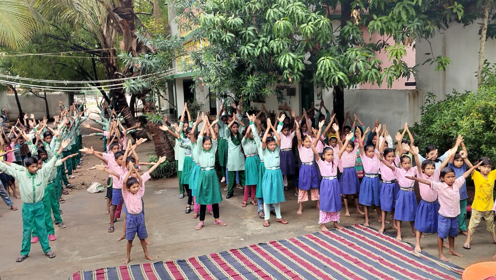 राजकीयकृत मध्य विद्यालय में योग दिवस पर कराया गया योगाभ्‍यास