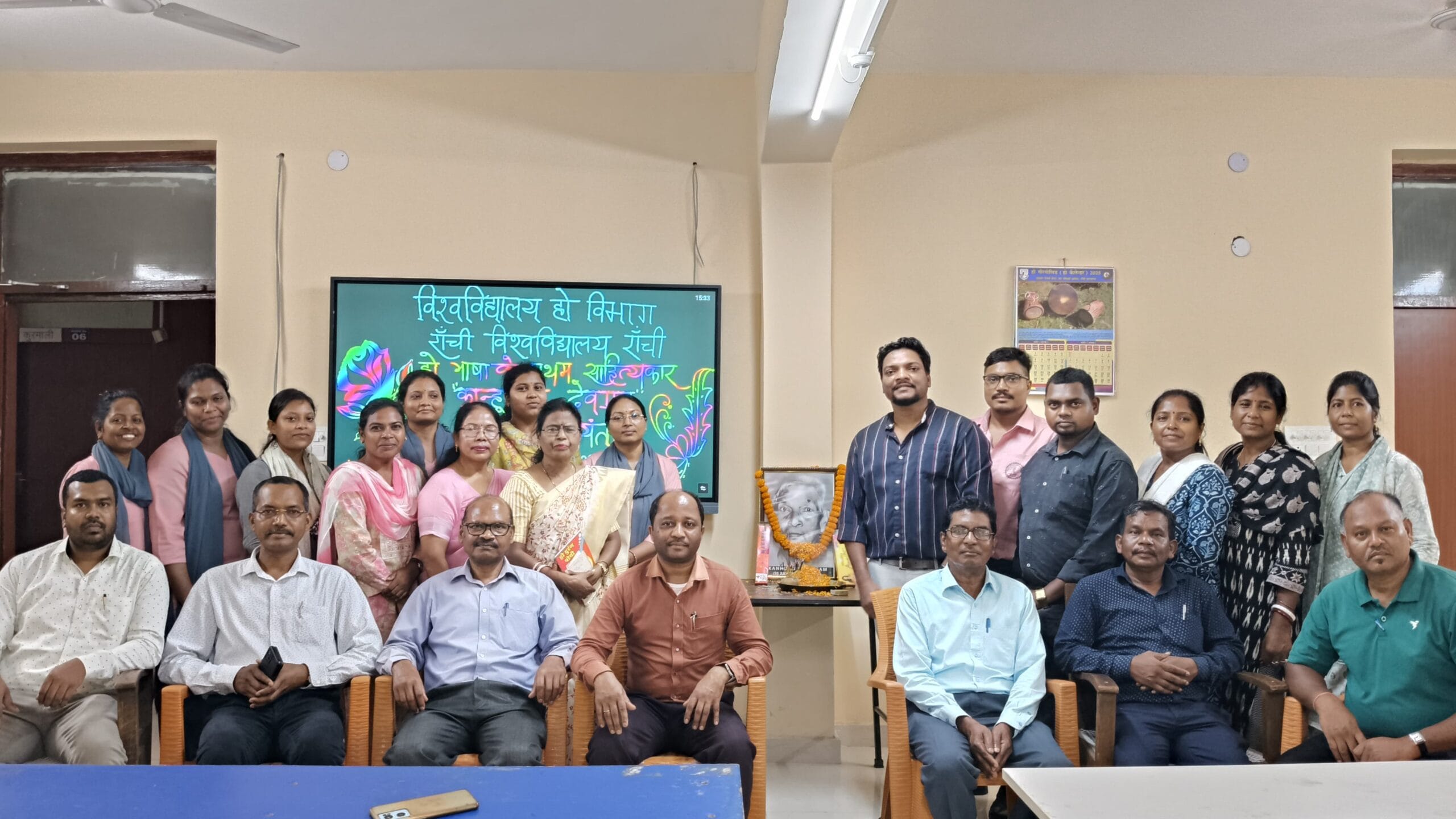 कार्यक्रम में डॉ अर्चना दुबे (संकाय अध्यक्ष, मानविकी), प्रो. प्रेम मुर्मू (अध्यक्ष, हो एवं संथाली विभाग), डॉ. दमयंती सिंकू, डॉ. प्रदीप कुमार बोदरा (संत जेवियर कॉलेज), डॉ. गुरुचरण पूर्ति, डॉ. अनुराधा मुंडू, डॉ. सरस्वती गागराई, प्रो. मनय मुंडा (अध्यक्ष, मुंडारी विभाग), डॉ. किशोर सुरीन, प्रो. बंधु भगत (अध्यक्ष, खड़िया विभाग), प्रो. सुजाता टेटे, प्रो. राज बास्के (संथाली विभाग), अनिता नाग, शांति नाग, सुष्मिता नाग आदि मौजूद थे।