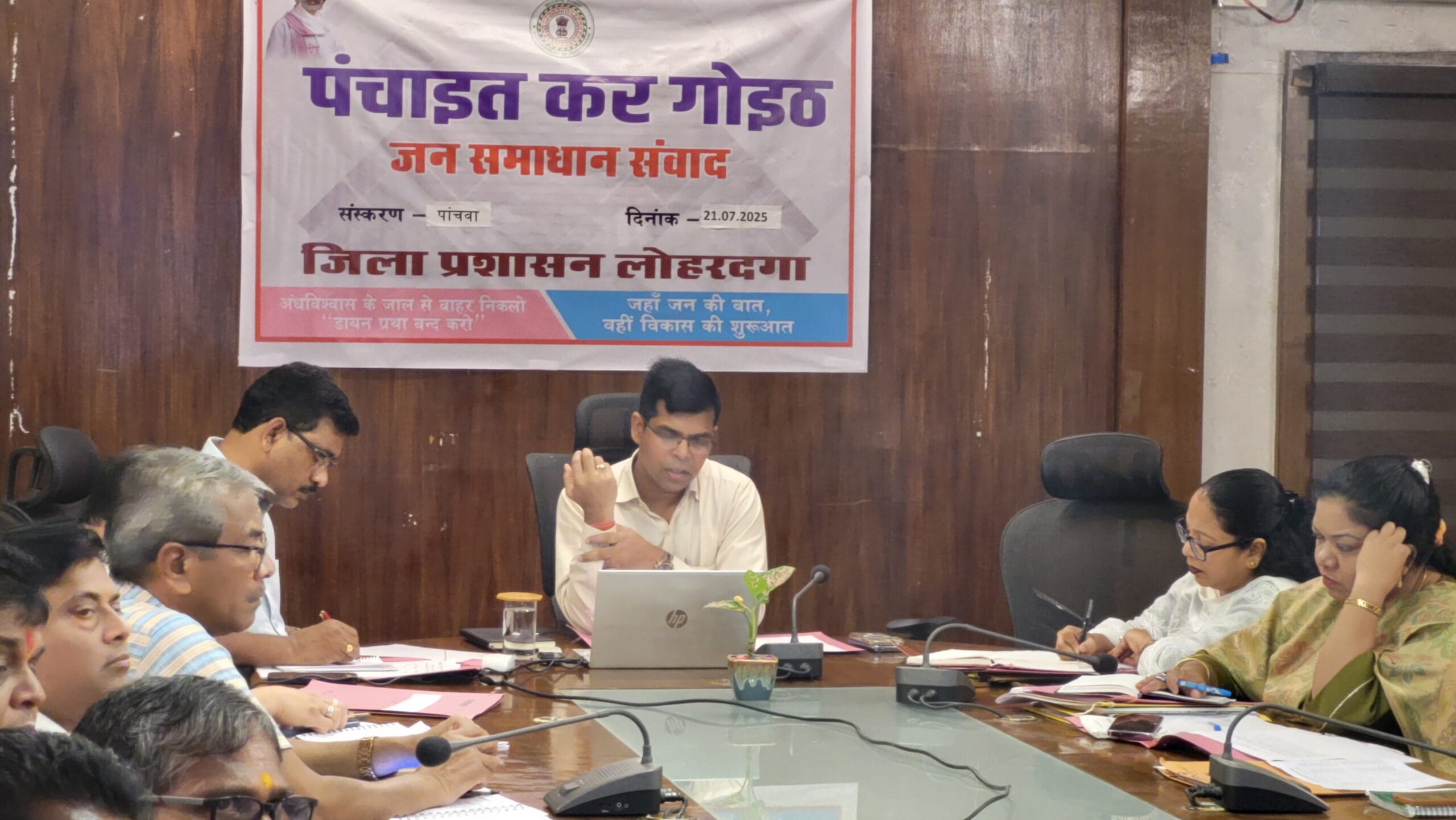 लोहरदगा। उपायुक्त डॉ ताराचंद ने साप्ताहिक कार्यक्रम “पंचाइत कर गोइठ” के तहत जिले के मुखियाजनों से सोमवार को संवाद स्थापित किया। इस कार्यक्रम में उपायुक्त ने विभिन्न पंचायतों के मुखियाओं से बातचीत कर सरकार की महत्वकांक्षी योजनाओं से उन्हें अवगत कराया। उनके क्षेत्र की समस्याओं से स्वयं भी वे अवगत हुए।
