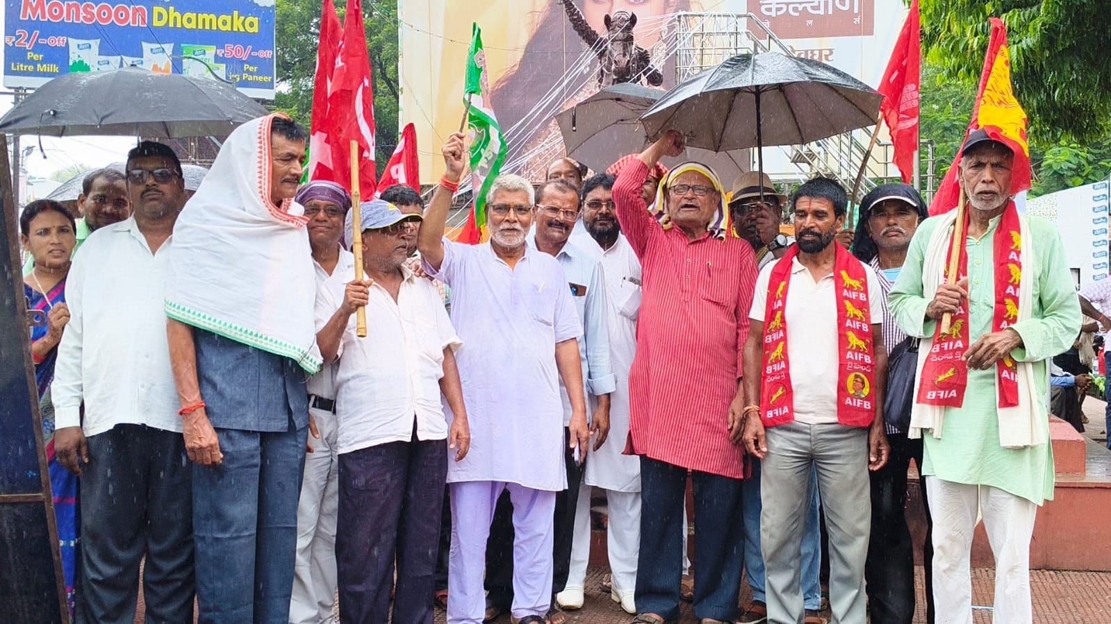 देवघर। श्रमिक संगठनों की देशव्यापी हड़ताल में देवघर में बैंक सहित मजदूरों ने भी भागीदारी निभाई। वीआईपी चौक के निकट सभी ने धरना-प्रदर्शन किया। सभी बैंक बंद रहे। श्रमिक संगठनों ने 4 लेबर कोड को वापस लेने सहित 17 सूत्री मांगों को लेकर हड़ताल का आह्वान किया था।