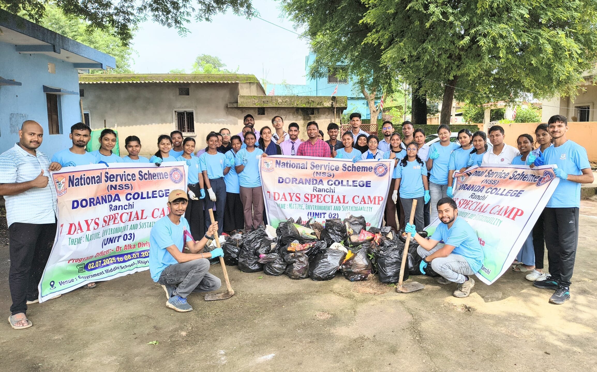 रांची। डोरंडा महाविद्यालय के प्राचार्य डॉ राज कुमार शर्मा के दिशानिर्देश के आलोक में कॉलेज की एनएसएस इकाई सात दिवसीय विशेष शिविर चला रहा है। इसके तीसरे दिन गोद लिए गांव खिजरी में एनएसएस कार्यक्रम पदाधिकारी प्रो कंचन मुंडा के नेतृत्व में स्वच्छता अभियान चलाया गया।