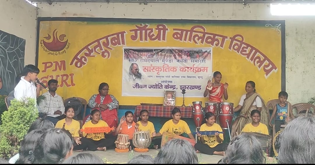 रांची। जीवन ज्योति केंद्र की ओर से शिक्षाविद एवं झारखंड के सुप्रसिद्ध लोक कलाकार पद्मश्री स्व. राम दयाल मुंडा की जयंती पर बुंडू स्थित कस्तूरबा गांधी बालिका उच्च विद्यालय में कई तरह के सांस्कृतिक कार्यक्रमों का आयोजन किया गया। सांस्‍कृतिक कार्यक्रम ‘जे नाची से बांची’ के तहत बच्चों ने कई मनमोहक प्रस्तुति देकर सबका दिल जीत लिया।