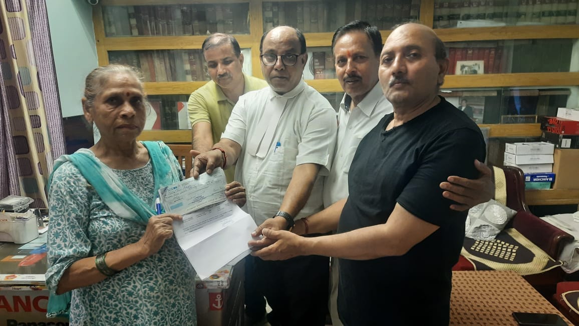 लोहरदगा। जिला अधिवक्ता संघ के पूर्व वरीय सदस्य दयानंद प्रसाद की मृत्यु हो गई थी। मृत्यु के बाद प्राप्त होना वाला लाभ उनकी पत्नी रानी आर्या और पुत्र शशांक कुमार को सौंपा गया। इसके तहत तीन लाख तीस हजार रुपये का डिमांड ड्राफ़्ट अधिवक्ता ट्रस्टी कमेटी से प्राप्त होने के बाद उन्हें सौंपा गया।