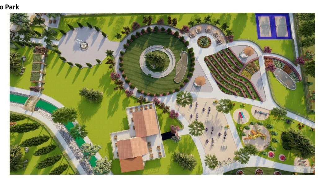 प्रवेश द्वार, पार्किंग एरिया, गार्ड रूम, पाथ वे, प्लांटर बेड, ग्रीन एरिया, स्कल्पचर प्लेटफार्म, गजीबो, पॉली हाउस, गार्डेन आर्क, परगोला, एनिमल स्कल्पचर, स्वायल माउंड, प्लांटर बाक्स, तालाब, सर्रकुलर सिटिंग, बैडमिंटन कोर्ट, चिल्ड्रेन प्ले एरिया, ओपेन जिम, स्टेप्पड सिटिंग, फ्लावर बेड, शौचालय, पेबल बेड, स्टेप्पड, फाउंटेन, रेस्टोरेंट, स्क्वायर पैवेलियन, कमल फूल का तालाब, फाउंटेन।