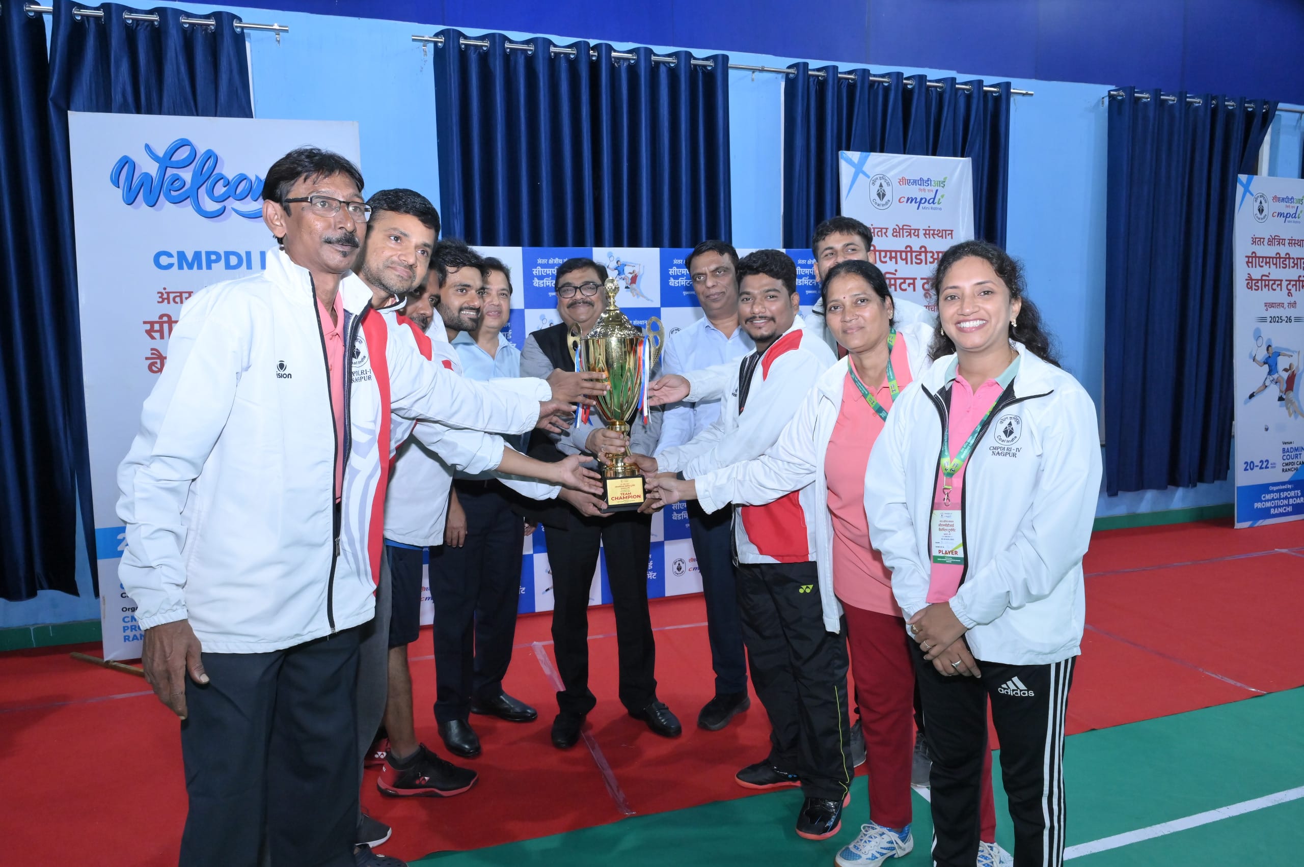रांची। सीएमपीडीआई अंतर क्षेत्रीय संस्थान बैडमिंटन टूर्नामेंट 2025-26 के फाइनल मुकाबले में क्षेत्रीय संस्थान-4-नागपुर ने मुख्यालय-रांची को पराजित कर टीम चैम्पियनशिप का खिताब हासिल किया। सीएमपीडीआई के अध्यक्ष-सह-प्रबंध निदेशक मनोज कुमार ने टीम चैम्पियनशिप के विजेता एवं उप-विजेता को पुरस्कृत किया।