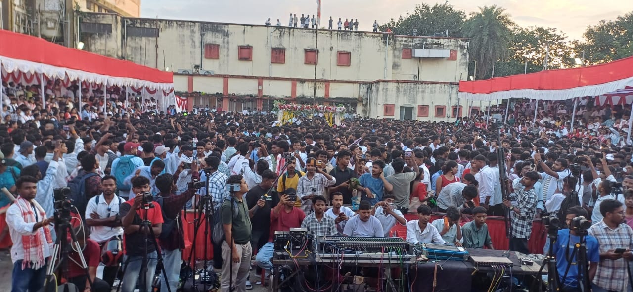 रांची। आदिवासी छात्र संघ ने करम परब पूर्व संध्या पर डॉ श्याम प्रसाद मुखर्जी विवि परिसर में पूरे उल्लास के साथ 26 अगस्त को मनाया। इसमें हजारों की संख्या में छात्र छात्राएं पारंपरिक वेश-भूषा एवं ढोल नगाड़ा के साथ कॉलेज के अखाड़ा में शामिल हुए।