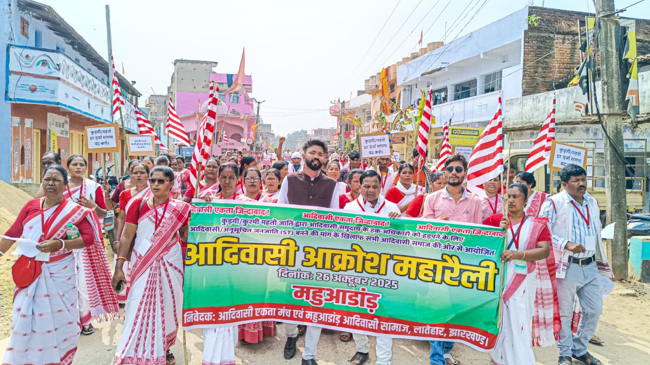 लातेहार। महुआडांड़ अनुमंडल क्षेत्र के आदिवासी संगठनों, मुखियाओं, सामाजिक कार्यकर्ताओं और युवाओं द्वारा 26 अक्टूबर एक भव्य जनसभा एवं रैली का आयोजन किया गया। रैली में हजारों की संख्या में आदिवासी पुरुष, महिलाएं और युवा पारंपरिक पोशाकों एवं बैनरों के साथ शामिल हुए।