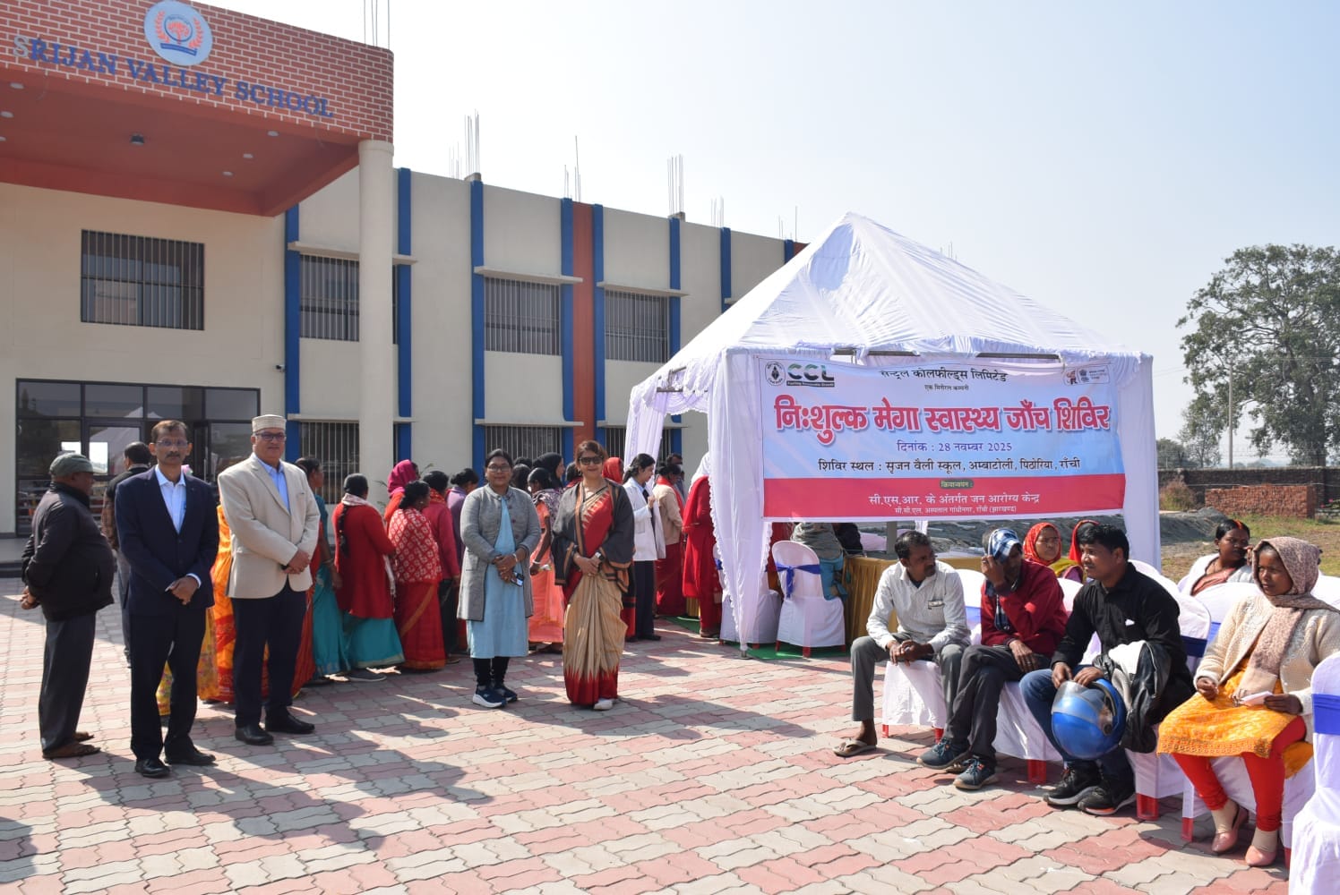 रांची। सीसीएल जन-आरोग्य केंद्र, गांधीनगर ने नि:शुल्क मेगा स्वास्थ्य जांच शिविर का आयोजन 28 नवंबर, 2025 को सृजन वैली स्कूल, अम्बाटोली परिसर में किया। शिविर का आयोजन सीएमडी निलेंदु कुमार सिंह के मार्गदर्शन एवं निदेशक (मानव संसाधन) हर्ष नाथ मिश्र के निर्देशन में हुआ।