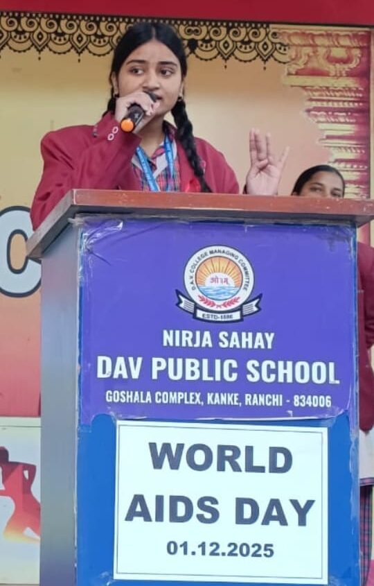 पिठोरिया। कांके स्थित नीरजा सहाय डीएवी में जीव विज्ञान विभाग द्वारा एड्स जागरुकता अभियान के मद्देनजर प्रातः कालीन प्रार्थना सभा में विद्यार्थियों को इस जानलेवा बीमारी के विषय में जानकारी दी गई। इसके अंतर्गत विद्यालय के वरीय शिक्षक संजीव प्रसाद ने एड्स से जुड़े आंकड़े और तथ्य प्रस्तुत किए।