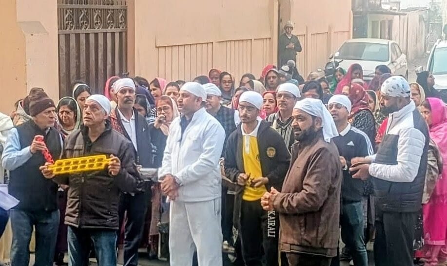 सरदार छोटू सिंह ने निशान साहब उठाकर प्रभात फेरी की अगुवाई की। मनीष मिड्ढा ने श्रद्धालुओं के घरों के सामने वाहेगुरु से मंगल कामना की अरदास की।
