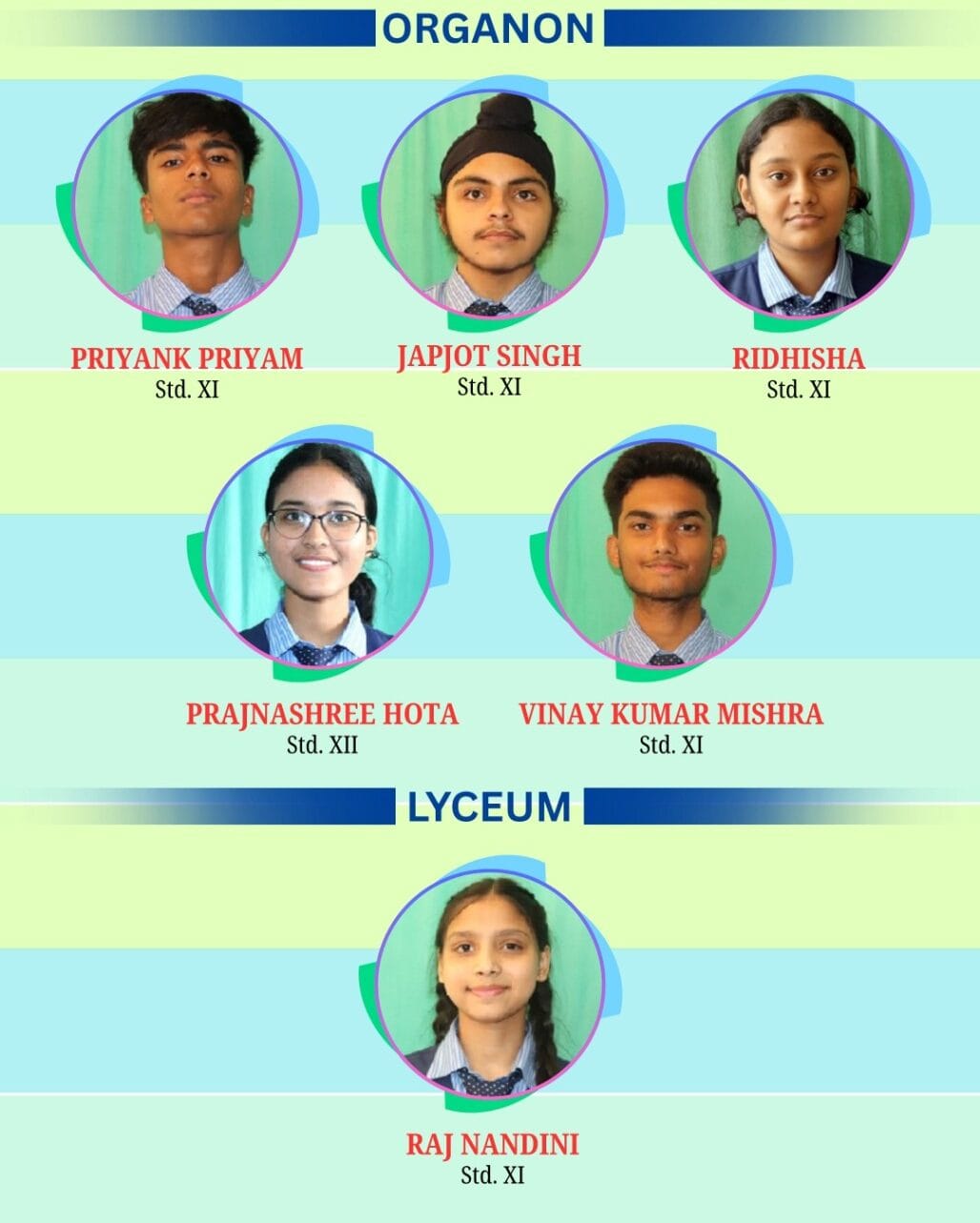ऑर्गेनन-प्वाइंट काउंटर प्वाइंट अर्थशास्त्र त्रि-चर्चा प्रतियोगिता में कक्षा ग्यारहवीं के प्रियांक प्रियम, जपजोत सिंह, रिदिशा, विनय कुमार मिश्रा और कक्षा बारहवीं की प्रज्ञाश्री होता ने अपनी विश्लेषणात्मक क्षमता और आर्थिक समझ का प्रभावी प्रदर्शन करते हुए प्रथम उपविजेता का स्थान प्राप्त किया।