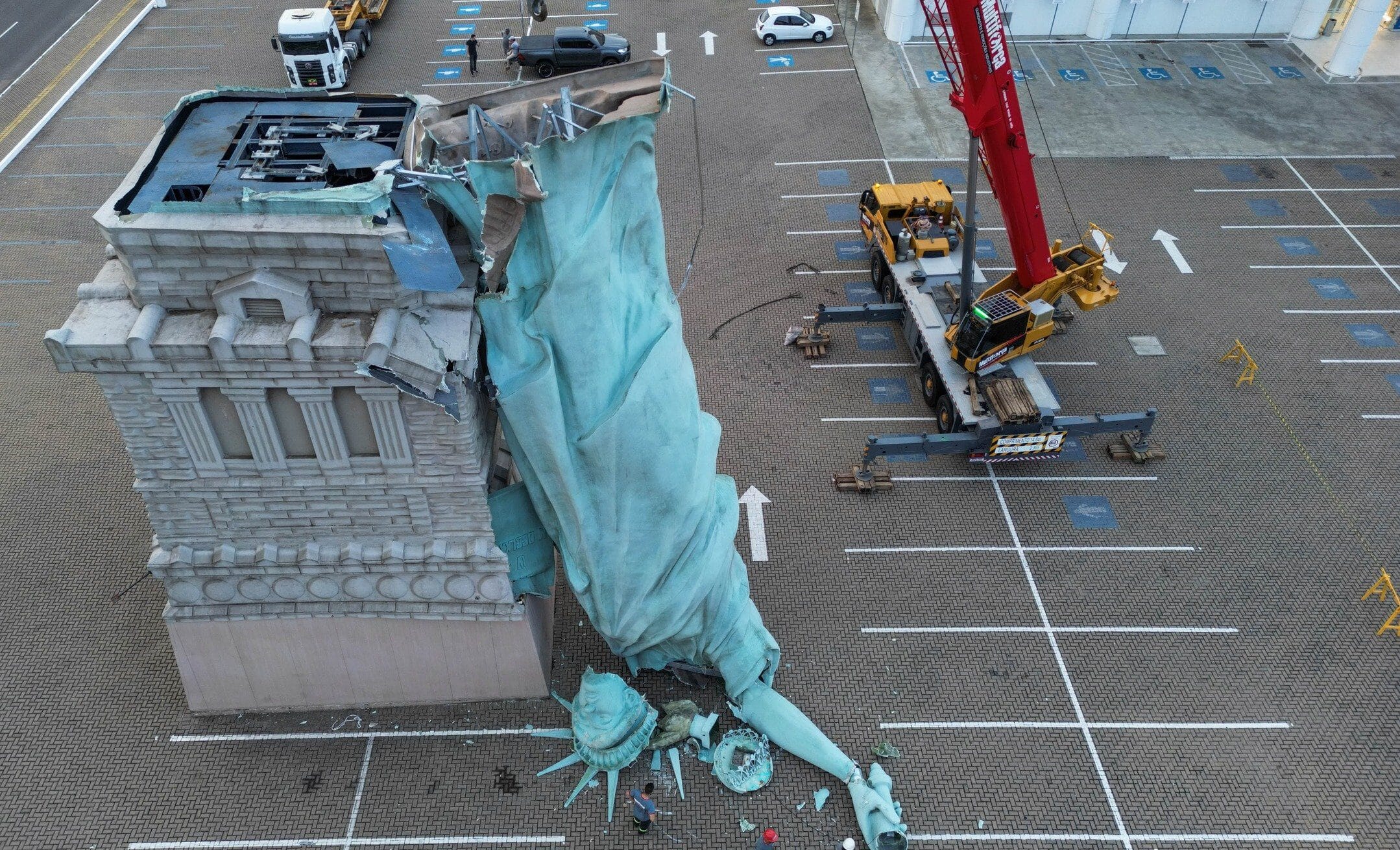 गिरा स्टैच्यू न्यूयॉर्क वाली असली Statue of Liberty नहीं है। यह ब्राज़ील की एक लगभग 24-मीटर-ऊंची प्रतिकृति (replica) है। रिटेल चेन “Havan” के गुआइबा megastore के सामने पार्किंग क्षेत्र में लगी थी।