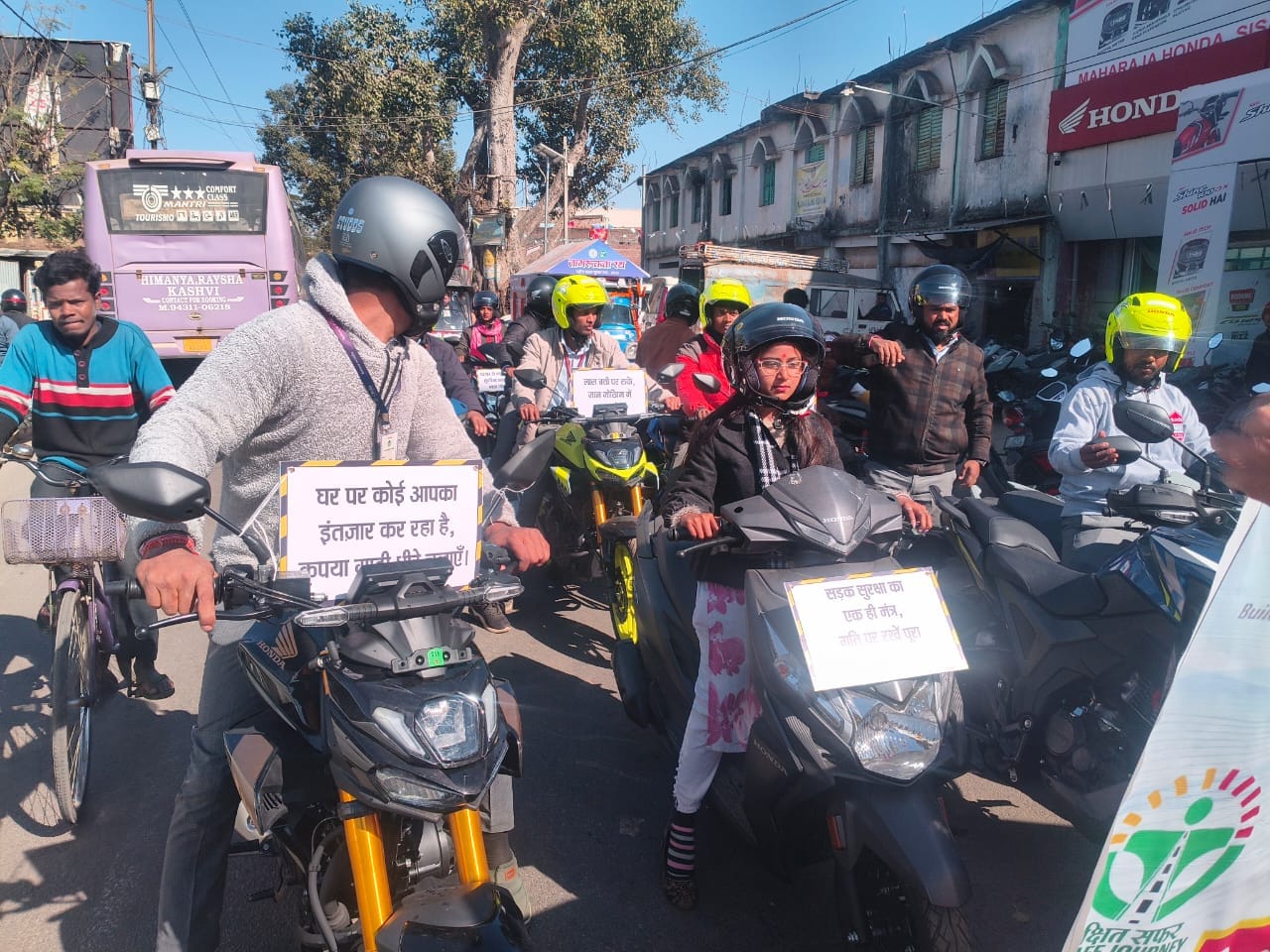 गुमला। शहर में सड़क सुरक्षा के प्रति जागरूकता फैलाने के उद्देश्य से एक बाइक रैली का आयोजन किया गया। जिला प्रशासन, परिवहन विभाग और होंडा मोटरसाइकिल शोरूम के संयुक्त तत्वाधान में आयोजित इस रैली को थाना प्रभारी गुमला महेंद्र कुमार करमाली ने हरी झंडी दिखाकर रवाना किया।