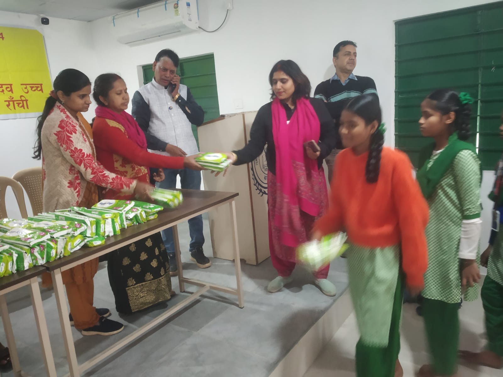 रांची। राजधानी रांची के कोकर स्थित राम लखन सिंह यादव हाई स्कूल में 135 छात्राओं के बीच शनिवार (31जनवरी 2026) को सेनेटरी पैड का वितरण किया गया। इसके साथ ही सुप्रीम कोर्ट के आदेश के बाद यह विद्यालय झारखंड में सेनेटरी पैड बांटने वाला पहला स्कूल बन गया है। शहर के जाने-माने समाजसेवी रतन लाल अग्रवाल ने सेनेटरी पैड वितरण कार्यक्रम की अगुवाई की।