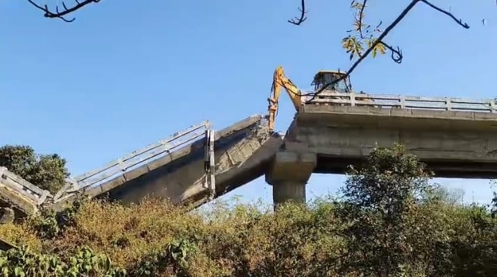 गुमला। चैनपुर-डुमरी के सीमावर्ती बॉर्डर क्षेत्र के टाटी नवगई नदी में बना हाई लेबल पुल एक साल भी टिक नहीं सका। ध्वस्त हो गया। यह पुल दो करोड़ रुपये से अधिक की लागत से बनया गया था। ग्रामीणों ने बताया कि उक्त पुल से एक भारी वाहन पार कर रहा था। उसी सम पुल का दो स्पैन ध्वस्त हो गया।