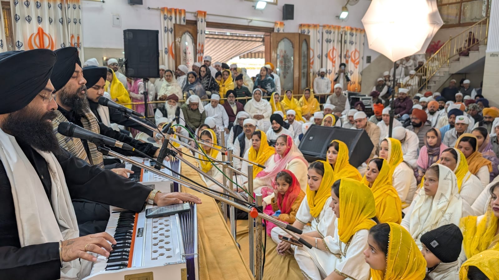 समागम में विशेष रूप से शिरकत करने पहुंचे सिख पंथ के प्रसिद्ध कीर्तनी जत्था भाई बलजीत सिंह जी पटियाला वाले ने अपनी सुरीली आवाज में “इनही की किरपा से सजे हम हैं नहीं मो से गरीब करोर परे हैं…” और “तहीं परकाश हमारा भयो पटना शहर विखे भव लयो…” एवं “तुम हो सब राजन के राजा आपे आप गरीब नवाजा…” व “वाहो वाहो गोबिंद सिंह आपे गुर चेला…” और “मितर पिआरे नु हाल मुरीदां दा कहणा…” जैसे कई शबद गायन कर समां बांध दिया।