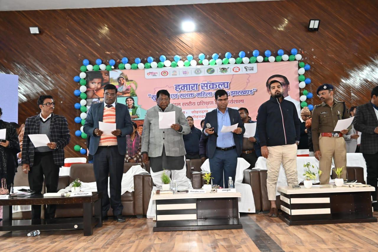 लोहरदगा। महिला बाल विकास एवं सामाजिक सुरक्षा की ओर से मंगलवार को एक दिवसीय प्रशिक्षण-सह-कार्यशाला का आयोजन नया नगर भवन में किया गया। मुख्य अतिथि रूप में लोहरदगा विधायक डॉ रामेश्वर उरांव शामिल हुए। सभी को बाल विवाह और डायन प्रथा के उन्मूलन की शपथ दिलायी गयी।