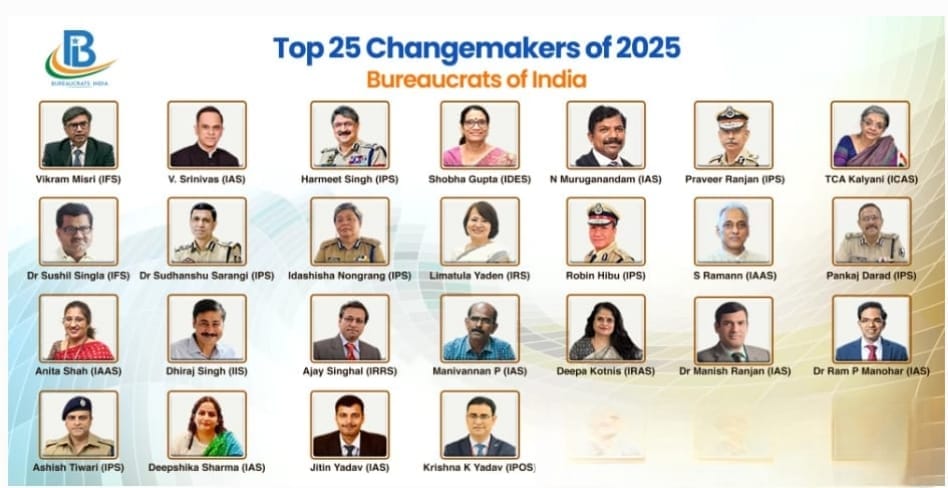 ‘ब्यूरोक्रेट्स इंडिया’ द्वारा वर्ष 2025 के लिए अखिल भारतीय स्तर पर “टॉप 25 चेंजमेकर्स” की सूची जारी की गई है। इस सूची में विदेश सचिव, विभिन्न राज्यों के मुख्य सचिव, पुलिस महानिदेशक सहित आईएएस,आईपीएस, आईएफएस व केंद्रीय सिविल सेवाओं के वरिष्ठ अधिकारी शामिल हैं।