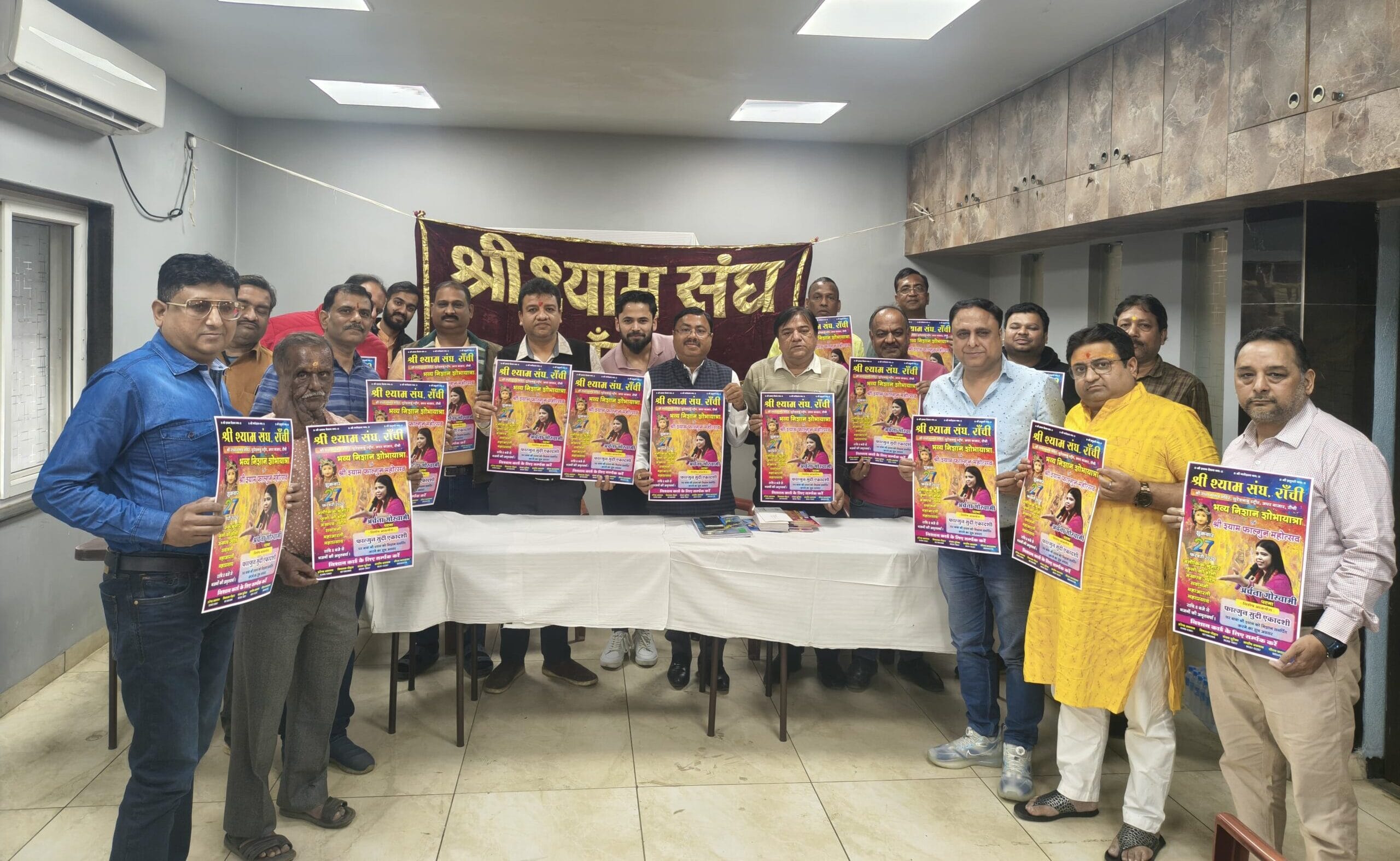 रांची। श्री श्याम संघ के तत्वावधान में अपर बाजार स्थित श्री राधा वल्लभ मंदिर परिसर में फाल्गुन उत्सव एवं निशान शोभायात्रा का आयोजन 27 फरवरी को किया गया है। इसे लेकर श्री श्याम संघ ने फाल्गुन उत्सव के पोस्टर का विमोचन गणेश मंत्रोच्चार के साथ किया।