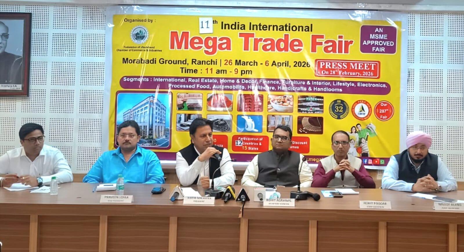 रांची। झारखंड चैंबर के तत्‍वावधान में इंडिया इंटरनेशनल मेगा ट्रेड फेयर का आयोजन 26 मार्च से 6 अप्रैल 2026 तक रांची के मोरहाबादी मैदान में किया जा रहा है। फेयर का समय सुबह 11 बजे से रात 9 बजे तक रहेगा। प्रवेश टिकट 30 रुपये निर्धारित किया गया है। प्रत्येक शनिवार को विशेष रूप से नाइट मार्केट का भी आयोजन होगा।