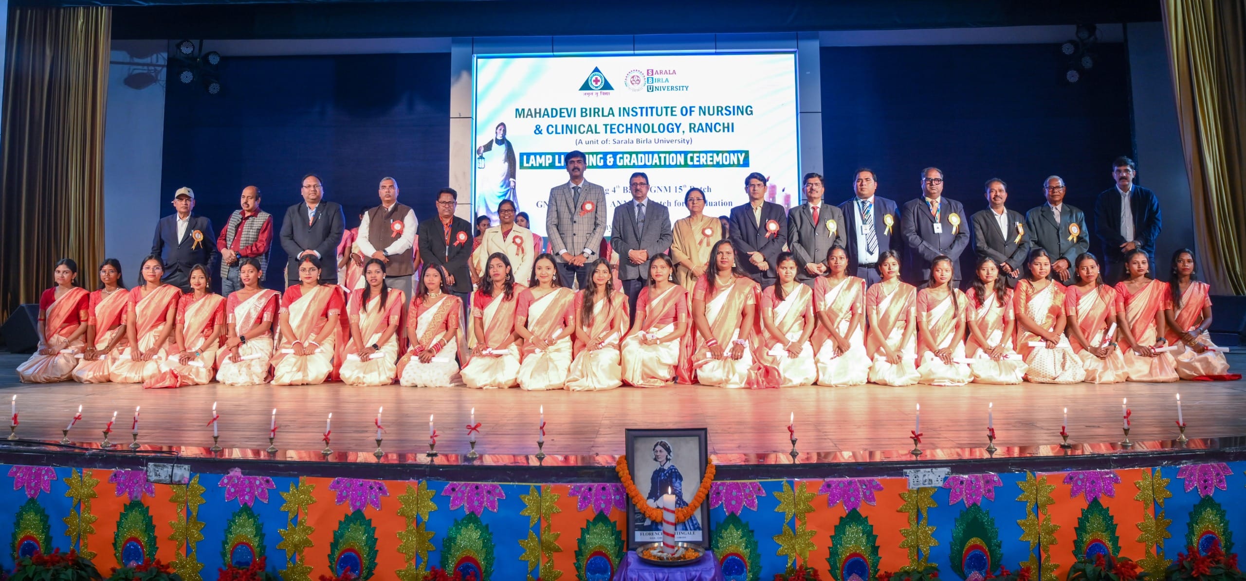 रांची। सरला बिरला विश्वविद्यालय परिसर में महादेवी बिरला इंस्टीट्यूट ऑफ नर्सिंग एंड क्लीनिकल टेक्नोलॉजी ने शुक्रवार को लैंपलाइटिंग और दीक्षांत कार्यक्रम का आयोजन किया।