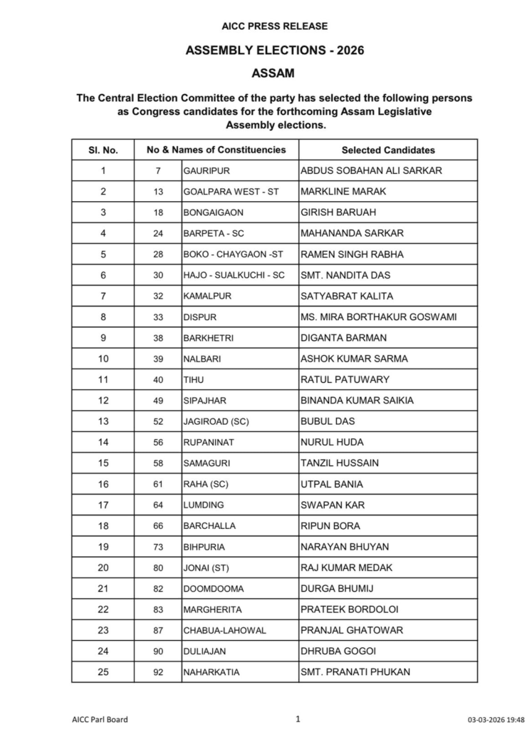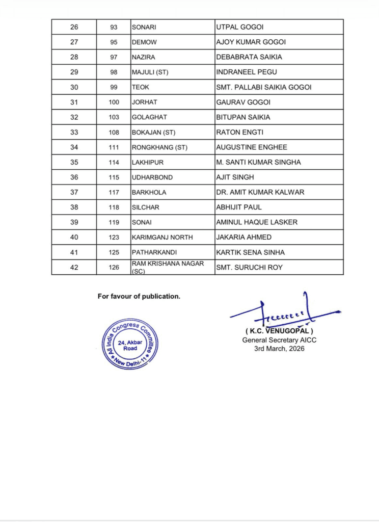 असम विधानसभा चुनाव के लिए कांग्रेस ने जारी की 42 उम्मीदवारों की सूची, यहां देखें