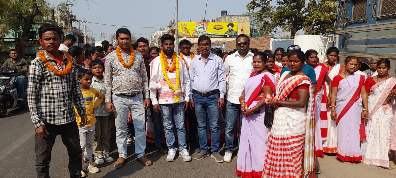 लोहरदगा। वार्ड 5 के विजयी पार्षद अजय उरांव के समर्थकों ने रविवार को उनके घर पतराटोली से गाजे बाजे के साथ विजय जुलूस निकाला। विजयी पार्षद अजय उरांव ने क्षेत्र के छोटे बड़े सभी का अभिवादन करते हुए आभार जताया।