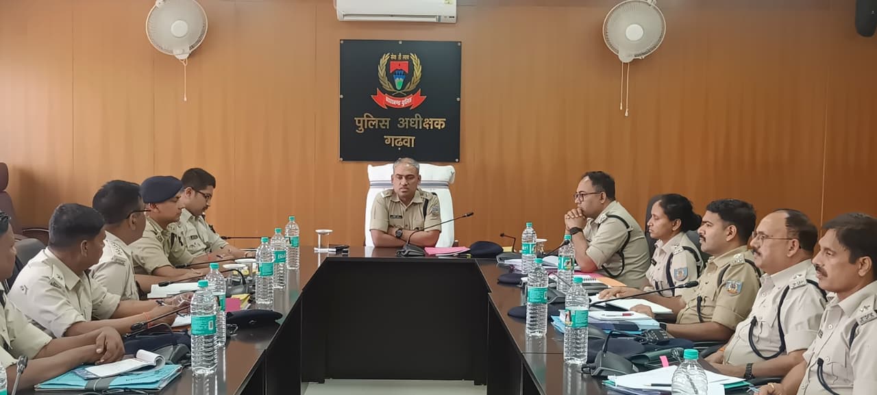 गढ़वा। नवपदस्थापित पुलिस अधीक्षक आशुतोष शेखर की अध्यक्षता में सोमवार को समाहरणालय स्थित एसपी कार्यालय के सभागार में अपराध समीक्षा बैठक हुई। इसमें जिले की कानून-व्यवस्था को सुदृढ़ बनाने और अपराध नियंत्रण को लेकर कई अहम निर्देश दिए गए।