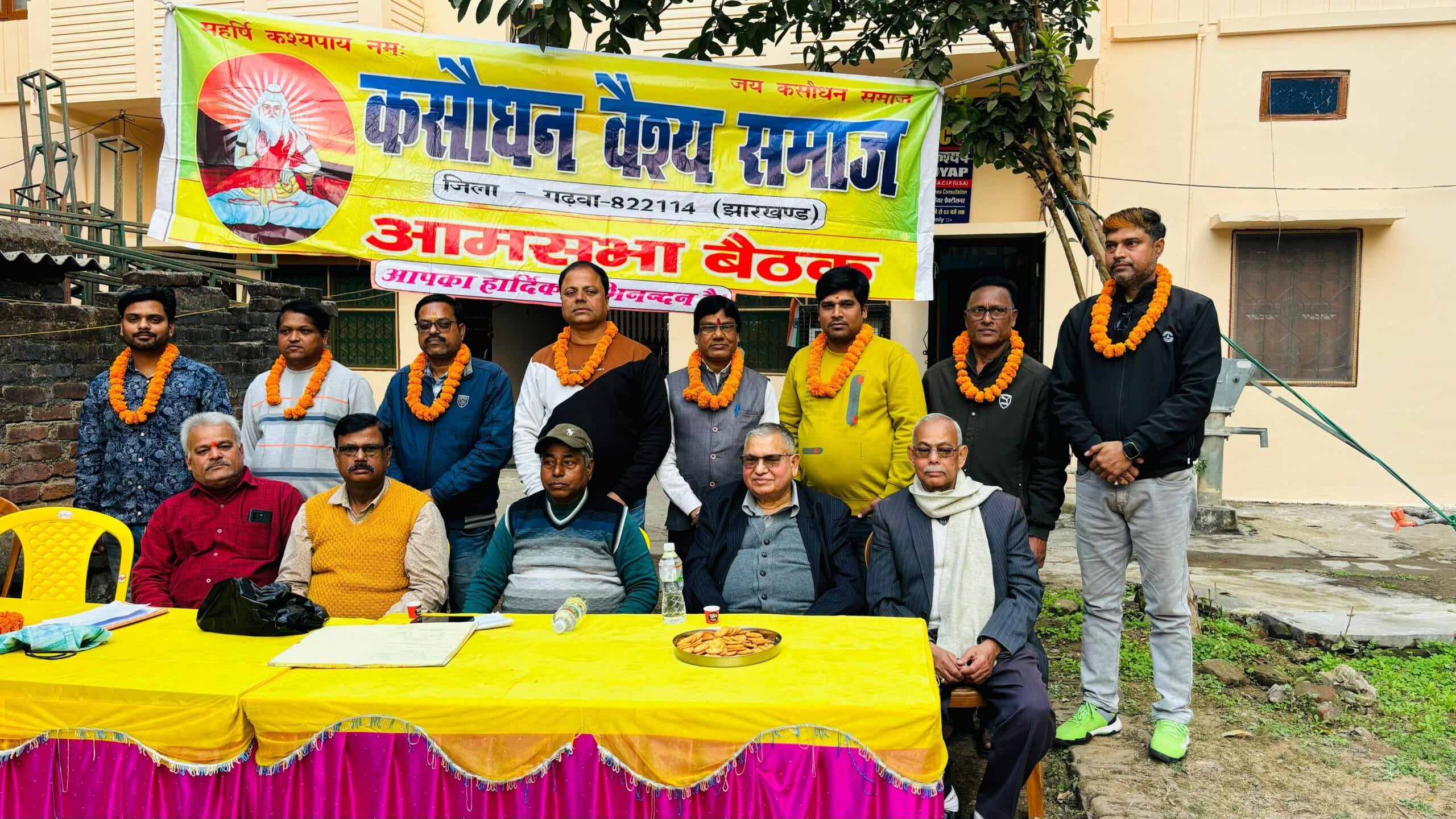 गढ़वा। कसौधन समाज की आमसभा में उमेश कश्यप को अध्यक्ष चुना गया। आम सभा डॉ भोला कश्यप के आवास पर रविवार को हुई। इसमें समाज का कार्यकाल पूर्ण होने पर चुनाव की प्रक्रिया प्रारंभ की गई। सर्वसम्मति से चुनाव कराने का निर्णय लिया गया। गोपाल कश्यप, संतोष कश्यप और सुरेंद्र कश्यप को चुनाव पदाधिकारी बनाया गया। इनकी देख रेख में चुनावी प्रक्रिया पूरी हुई।